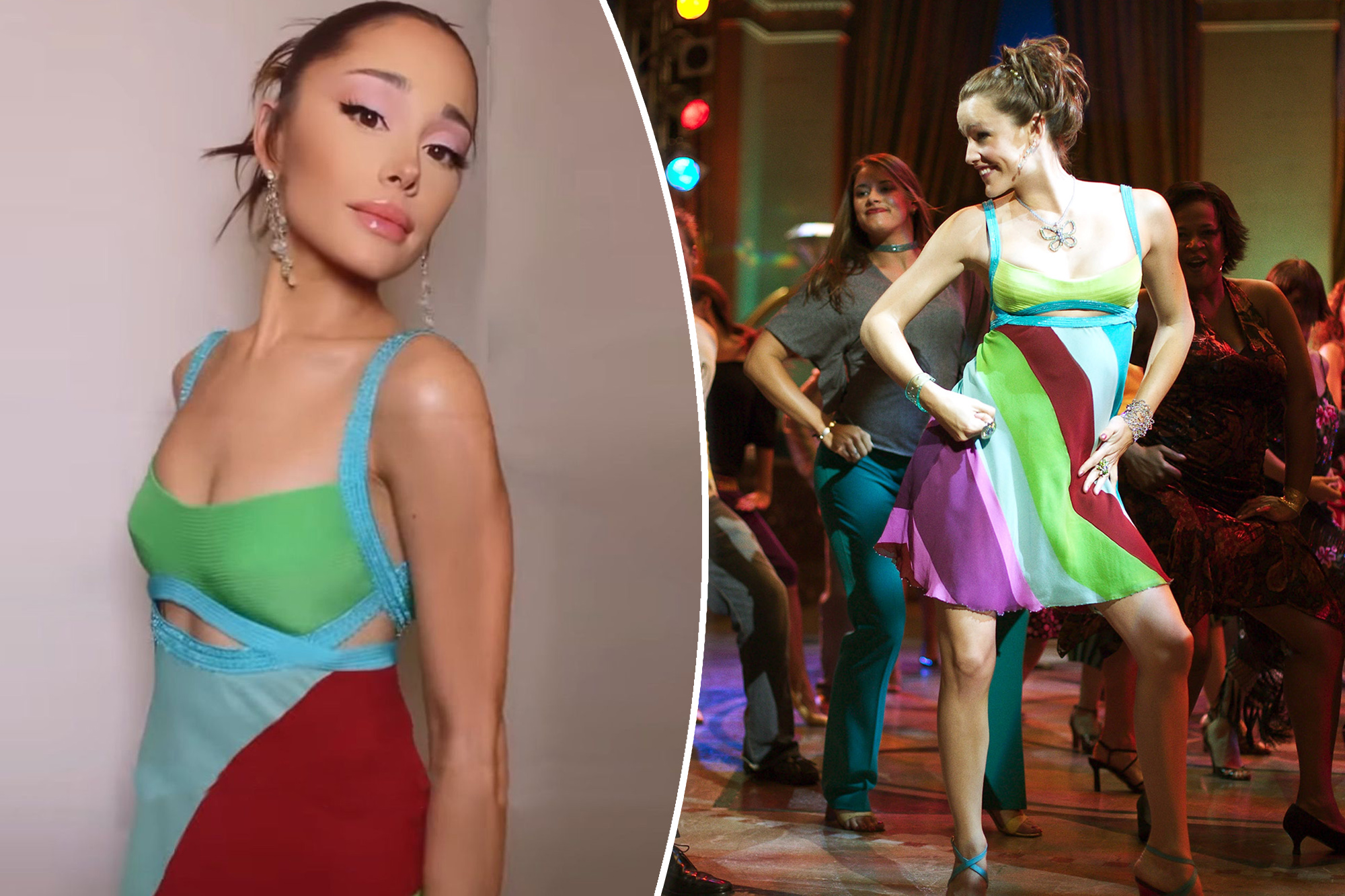 تألقت المغنية أريانا غراندي في إطلالاتها كحكم في برنامج ​The Voice​ فستان يعود الى العام 2004 من العلامة الايطالية فرساتشي. كانت لبسته الممثلة جنيفر غارنر في دورها في الفيلم 13 Going On 30.