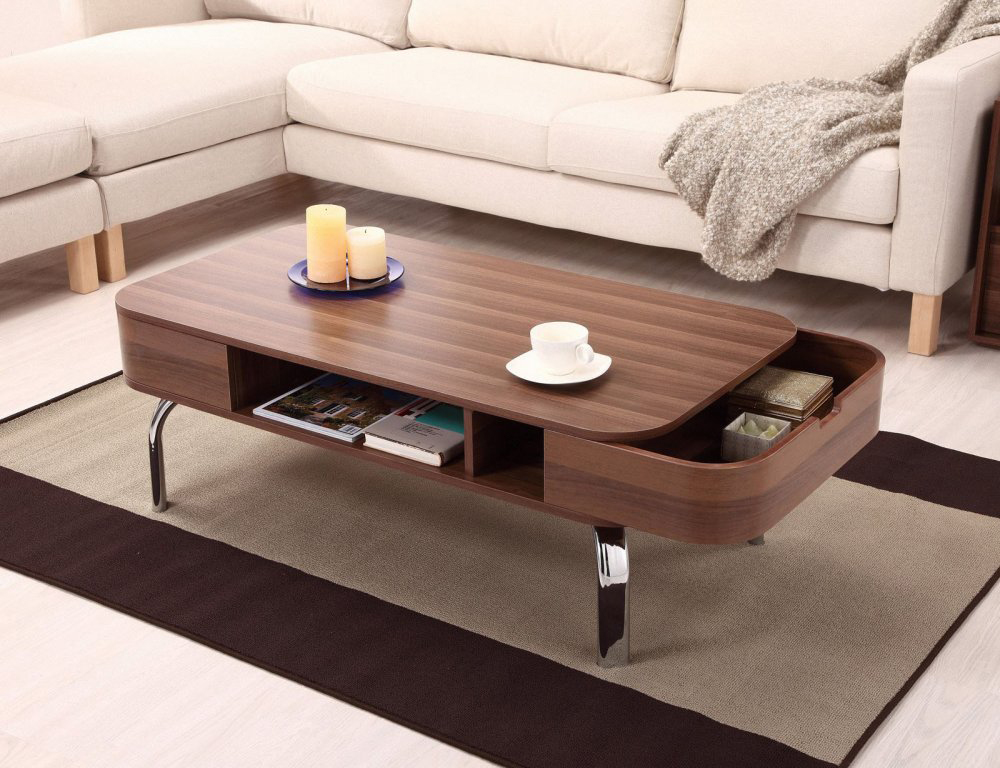 -وحدات تخزين لغرف الجلوس: يمكن أن تتحول طاولة غرفة الجلوس الأساسية إلى وحدة تخزين، يمكنك الاستفادة منها لحفظ الكتب، أو المكاتب الجدارية التي تستخدم لعرض القطع الفنيّة أو حفظ الكتب، أحيانًَا هناك تصاميم للآثاث، الكنب أو الكراسي يحتوي ضمنها على وحدات تخزين.