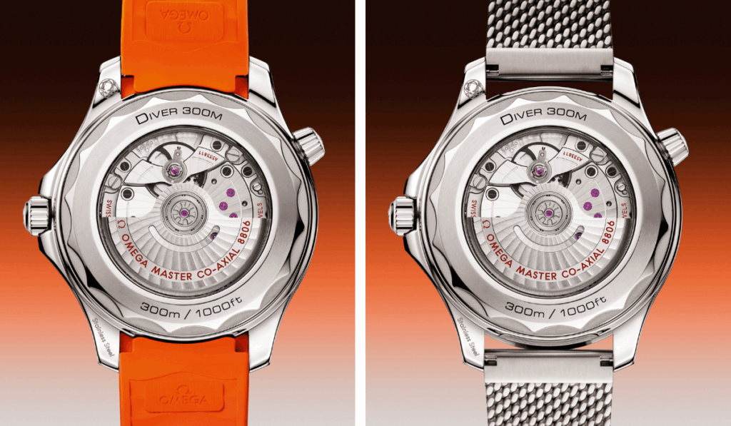 أما من الداخل، فتعمل كل ساعة بآلية حركة “أوميغا كو-أكسيال ماستر كرونوميتر كاليبر 8806″، والتي يمكن رؤيتها من خلال الكريستال الياقوتي على الجهة الخلفية للعلبة. وتضمن شهادة “ماستر كرونوميتر”، الصادرة عن المعهد الفيدرالي السويسري للقياس (METAS)، أعلى معايير الدقة والأداء والمقاومة للمجالات المغناطيسية.