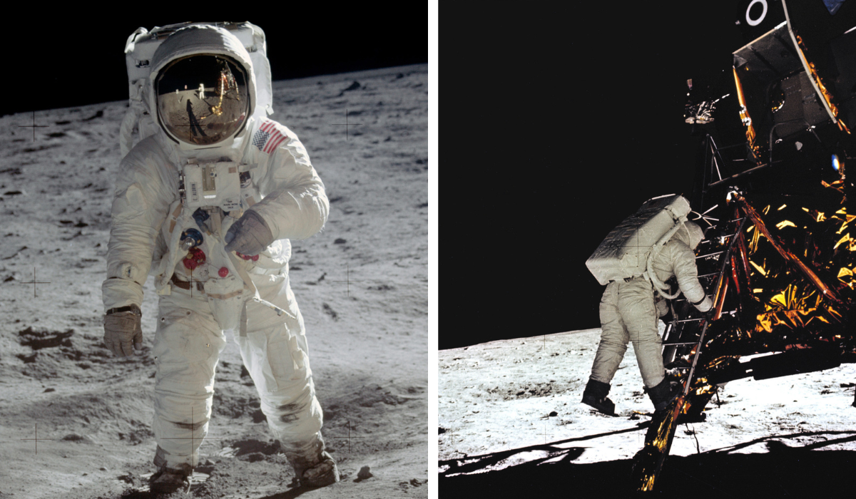ففي تمام الساعة 02:56 بتوقيت UTC من يوم 21 يوليو 1969، سُجل التاريخ بخطى الإنسان الأولى على سطح القمر. إذ خرج القائد نيل أرمسترونغ ورائد الفضاء باز ألدرين من المركبة الفضائية لمدة ساعتين و36 دقيقة فقط، لكن إنجازهما ترك بصمة خالدة في مسيرة استكشاف الفضاء.