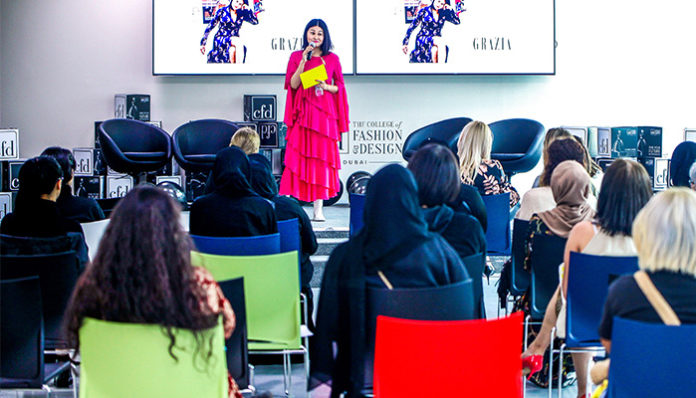 في الآونة الأخيرة ، استضافت كلية تصميم الأزياء في دبي أليسون تاي ، رئيسة تحرير جرازيا الشرق الأوسط ، العلامة التجارية الرائدة في مجال الموضة في المنطقة ، للتحدث عن ” مستقبل الموضة في الشرق الأوسط “. رسم خرائط للأزياء التجارية وإعطاء النصائح والخيارات المهنية التي تتوفر للخريجين الجدد لاستراتيجية الاتصال ، غطت أليسون تاي جميع تلك المواضيع .