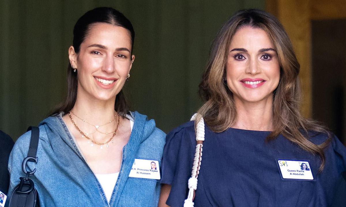 اختارت الملكة رانيا فستاناً باللون الأزرق الداكن من علامة Vocavaca نسّقت معه صندلاً من الجلد بلون الهافان من سي باي كلوي See by Chloé، فيما تألقت الأميرة رجوة بفستان من الدنيم مرفق بقلنسوة حمل توقيع دار علايا Alaïa انتعلت معه حذاء رياضياً باللون الأبيض وحملت حقيبة من الجلد الأسود من ديور Dior.