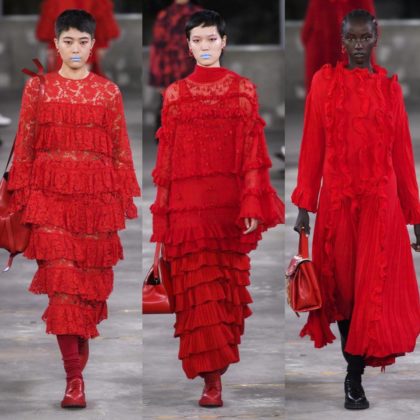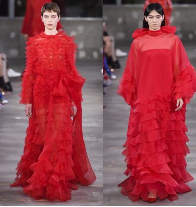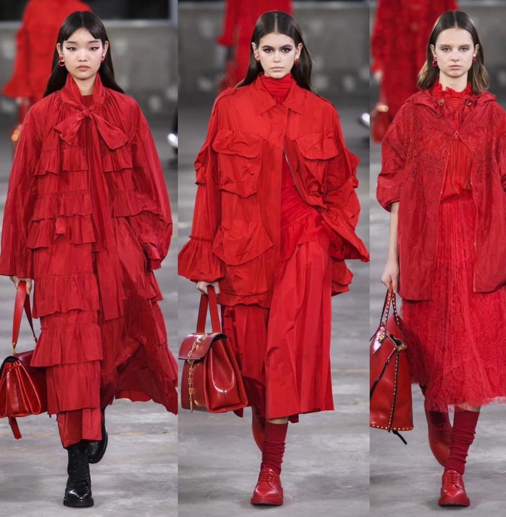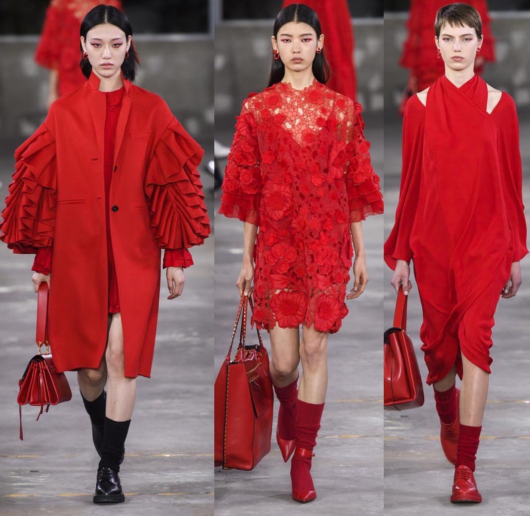 إذا كنت تعشقين اللون الأحمر، فأنت حتمًا ستنتقين إحدى أزياء فالنتينو (Valentino) التي قدمتها في مجموعتها لما قبل خريف وشتاء ٢٠١٩و التي تلاقي الإرث الياباني بالنهضة العصرية الإيطالية. طابع غني بالرقي والفخامة سيطر على المجموعة التي تنوعت ألوانها بين الأحمر والابيض والاسود، واختلفت قصاتها لتتناسب مع مختلف الاذواق.وقد لفتتنا التطريزات والكشاكش والتقليمات التي تميزت بقصتها الناعمة والبسيطة حيناً، والفاخرة والمبالغ بحجمها أحيانًا أخرى.