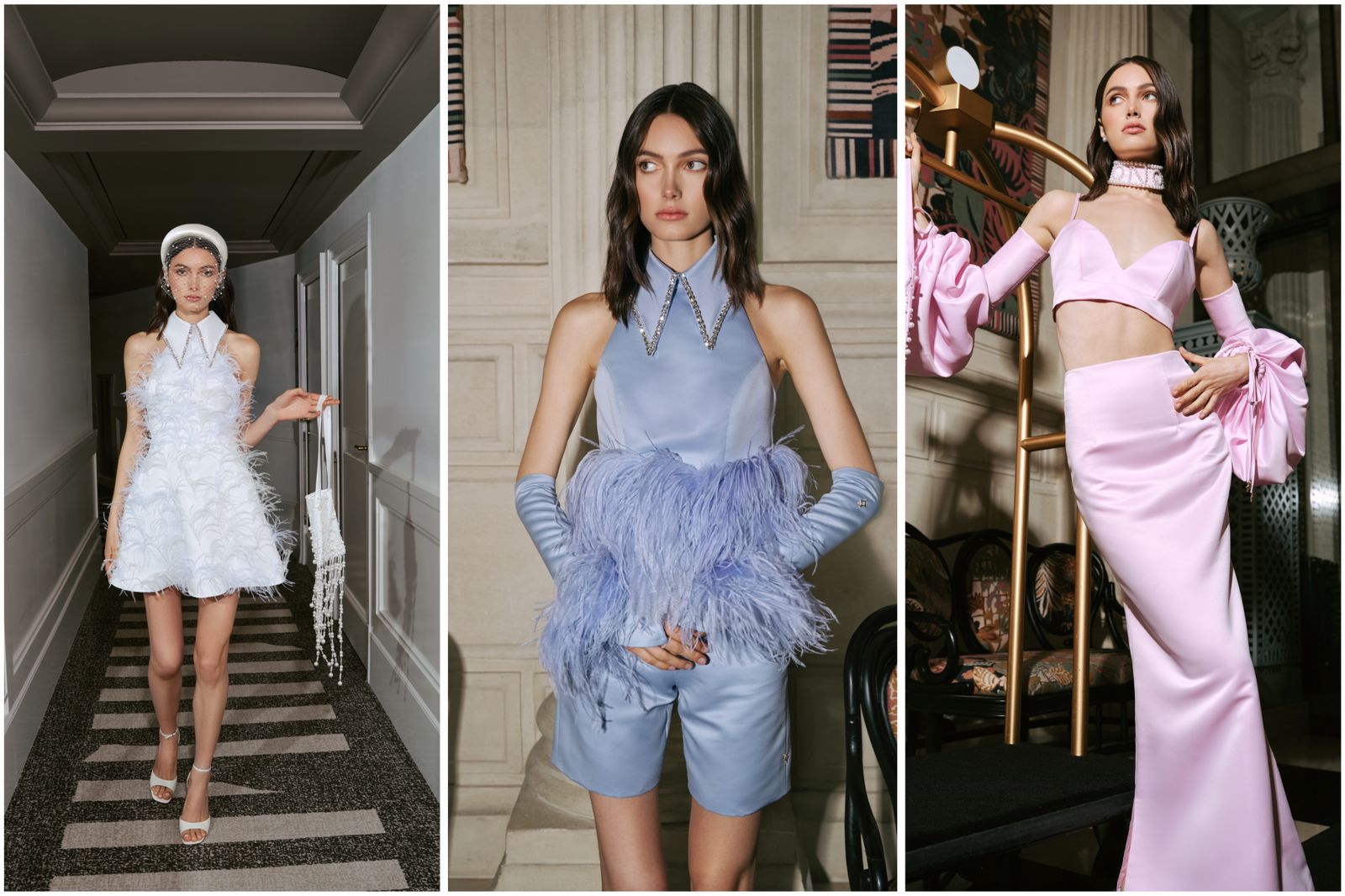 وتضم التشكيلة تصاميماً مفعمة بالتفاصيل الفاخرة والحيوية التي تحتفي بالصيحات الرائجة في فترات زمنية سابقة، ما يمنح عاشقات الموضة إطلالة جميلة تخطف الأنظار. وتتألق جميع التصاميم بطابع مستوحى من ستينيات وسبعينيات وثمانينيات القرن الماضي، لتبرز كعنصر أساسي في كامل التشكيلة.