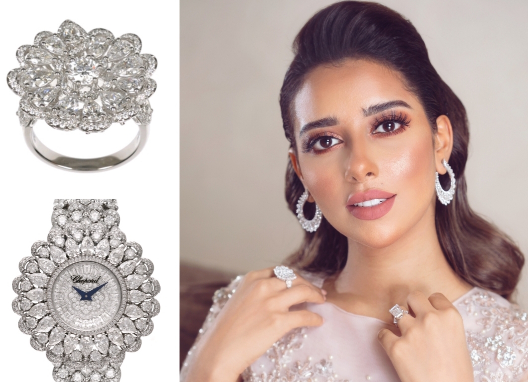 بلقيس فتحي تزين إطلالتها بمجوهرات فاخرة من شوبارد شارك على الفيسبوك غرد على تويتر لتتميز بإطلالة فاخرة، اختارت المغنية بلقيس فتحي مجموعة مجوهرات فخمة من الذهب الأبيض المرصع بالالماس، تضم أقراطًا وساعة وخاتم.