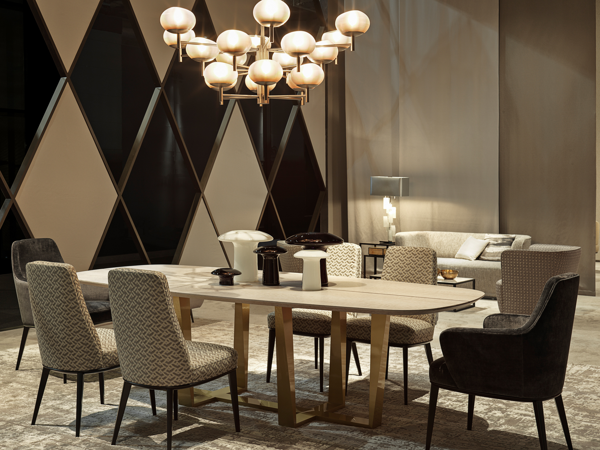 شكّل عالم الأفلام مصدرالإلهام وراء CINECITTA’ ،مع منتجات مرتبطة بأسماء ممثّلين وممثلّات ومعيدين إلى الذاكرةشخصيّات بارزة. الشخصيّات التي،رغم تبديل زيّها،تظل تحافظ على هويّة محدّدة.يتمثّل أحدالمواضيع المتكرّرة في المجموعة بالجمع والتداخل بين المواد والقوام،واستخدام الرخا والمعدن،واللمسات النهائيّة للخشب واللكر،إضافة إلى الأشكال الهندسيّة والخطوط العموديّة المائلة التيتبسّط العناصر وتجعلها منسابة،مما يمنحها إحساسًا من الخفّة والحريّة. وتحتفظ المجموعة المصمّمة والمخصّصة للأطقم “الدوليّة” بالروح الإيطاليّة القويّة.