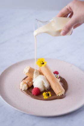 وتماماً كالأصناف السابقة، تبقى أطباق التحلية شهية بالدرجة نفسها. ومنها فوندان الشوكولاتة وزبدة الفول السوداني مع   جيلاتو مغلف بالشوكولاتة، وبودينغ الدبس والتوفي وهو عبارة عن بودينغ التمر اللزج الذي يُقدم مع بسكويت مقرمش وجيلاتو بنكهة الفانيليا وصلصة توفي قشدية. ولمن يحبون الأصناف الحلوة الخفيفة، يمكنهم تجربة رهش من تو وكيكات الحليب بالورد والخزامى المزخرفة بشكل جميل. أما في ساعات العصر المتأخرة والمساء، فيقدم المطعم تشكيلة شهية من الكيكات الصغيرة ومن بينها كيكة مربى الخزامى والتوت الأسود وكيكة الحلوى التركية وتوت العلّيق والورد التي تبقى كل واحدة منها مزيّنة بعناية وبدقة لتكون خاتمة نهاركم حلوة.