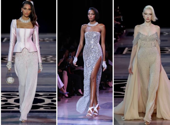 الرقيّ والأناقة هما عنوانا مجموعة جورج حبيقة (Georges Hobeika) الراقية لربيع وصيف 2019، والتي قدّمها ضمن فعاليات اسبوع الموضة الباريسي للأزياء الراقية. فقد تميّزت التصاميم بقصاتها الأنيقة، التي أتت ناعمة حينًا ومزيّنة بالتطريزات أو بالخرز أو بالريش أحينًا أخرى. وقد لفتنا ظهور الأكمام بأساليب مختلفة، وخصوصًا تلك المنسدلة التي تكشف عن الأكتاف. كذلك، ركّز المصمّم على الرسومات المستوحاة من الأزهار، التي أضفت مزيدًا من الأنوصة والنعومة على إطلالات العارضات. أمّا الألوان، فقد أتت هادئة بتدرجّات جميلة، ومن بينها الزهري الفاتح والبيج.