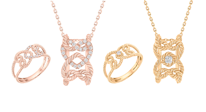 ويأتي كلّ تصميم حصري لقطعة “عقدة حب” على شكل خاتم أو أقراط أو قلادة أو سوار أو خلخال جميل، ما يسمح لك بتصميم وانتقاء هدية العمر من الذهب الأصفر 18 قيراط، أو الذهب الأبيض أو الوردي التي تحلم بها.