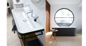 لتحقيق التجهيز الكامل للحمام بتصميم مستدام، يمكن الدمج بين طرازات أماكن الغسل الجديدة وجميع العناصر التابعة لسلسلة Happy D.2 وسلسلة Happy D.2 Plus: حيث تقدم سلسلة Happy D.2 Plus تصميم ألوان مستدامًا مع مرحاضين وبيديه بلون الأنتراسيت، بالإضافة إلى حوض استحمام ذي تغليف سلس المظهر تمامًا بنمط الجرافيت الخافت تمامًا، وهو ما يتوافق بصورة مثالية مع الوحدة المعدنية السوداء وأسطح الأثاث ذات اللون الداكن.