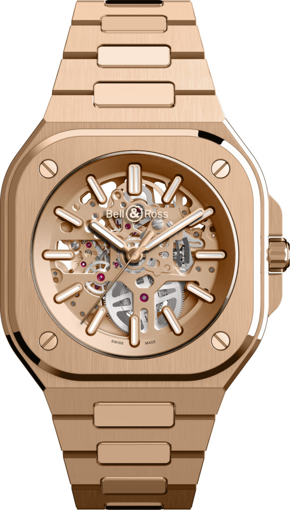 مثل سبيكة الذهب بقلب ميكانيكي، تُعتبر ساعة BR 05 SKELETON GOLD جوهرة ثمينة من التكنولوجيا المتقدّمة.