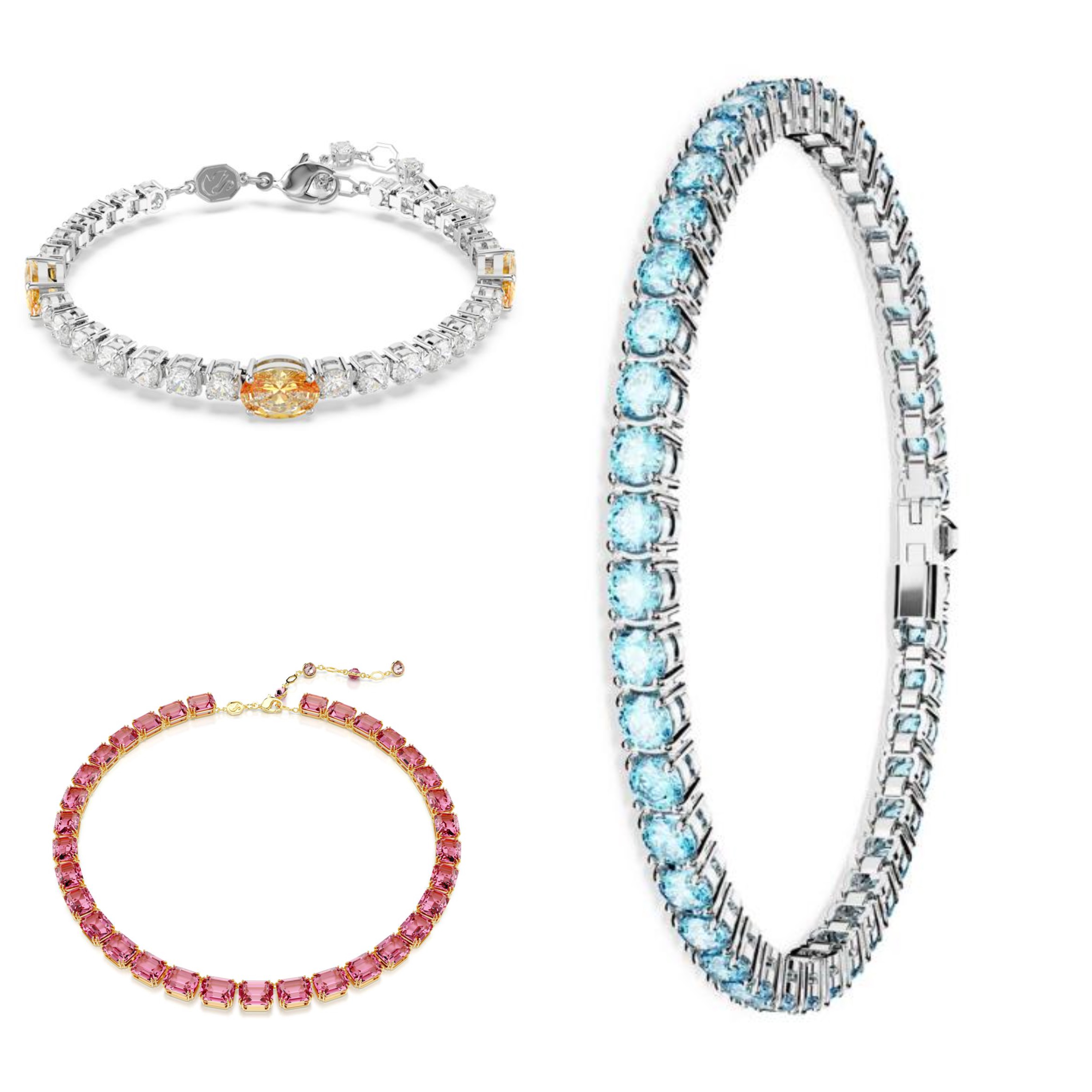 تعود تصاميم أسوار التنس الكلاسيكية من مجموعة Matrix بحلّة عصرية، حيث تتزاوج السلاسل المرصّعة بأحجار الكريستال الأبيض مع أحجار مستطيلة نابضة بالحيوية بألوان الأخضر، أو الأزرق، أو الزهري أو الأصفر، ما يجعلها هديةً ترضي كافة الأذواق.