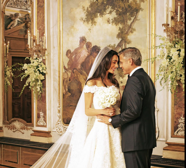 شاهدوا فستان زفاف أمل كلوني الرائع الذي تنازلت عنه