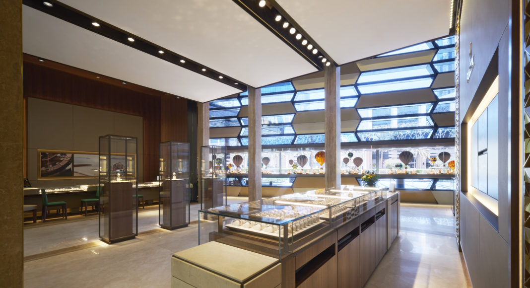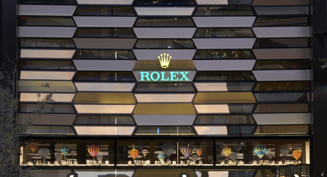 تمّ تصميم المتجر من مكوّناتمعماريّة مخصّصة حسب الطلب وفق الرؤية الإبداعيّة لقسم التصميم الداخليّ لدى الدار في جنيف، وضمن مشهد فنّيّ يعكس صورة العلامة التجاريّة بألوانها المميّزة وموادها الفريدة وخواصها المعماريّة. وتستوحي واجهة المبنى خطوطها الإبداعيّة من تصميم سـاعات ROLEX، فتبرز تفاصيل تحاكي الحواف المثلّمة لإطار الساعة، مع عناصر بديلة تجمع بين المواد الشفافة والمكوّنات الكامدة، ما يسمح للضوء الطبيعيّ بالدخول إلى المتجر ويمكّن الزوّار من رؤيةالمساحات الخارجيّة من الداخل. كما تحمل التصاميم إيحاءات مستقاة من مفردات الجمال والثقافة المحليّة، وتتواءم بانسجام في كافّة أنحاء المتجر.