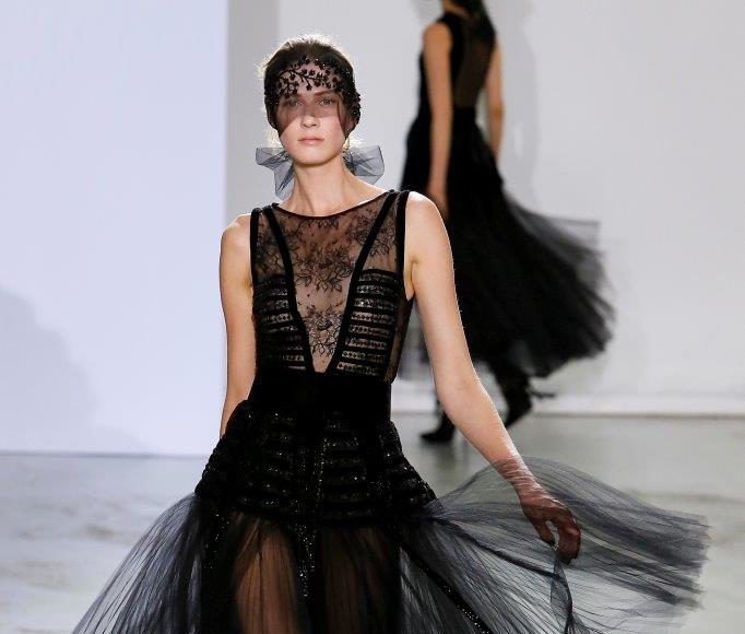 تداخل في العرض التول والكشكاش المثنيين بطبقات عدّة مع قصّات منخفضة على الصدر أو بأشكال هندسية على الصدر والأكتاف. أمّا الدانتيل والمخمل فكانا برّاقين والتطريز، من الستراس والأحجار ال Swarovski وبعض الريش، فزيّنت التصاميم مبرزة دقّتها.وطغى الأسود على المجموعة مع بعض ألوان الميتاليك، والأحمر، والوردي القويّ والبرتقالي الصارخ.