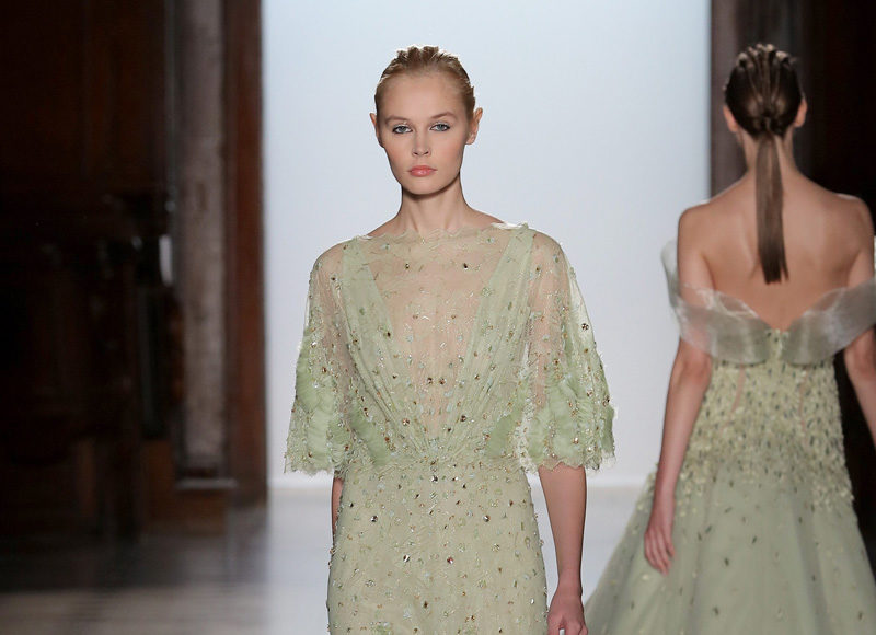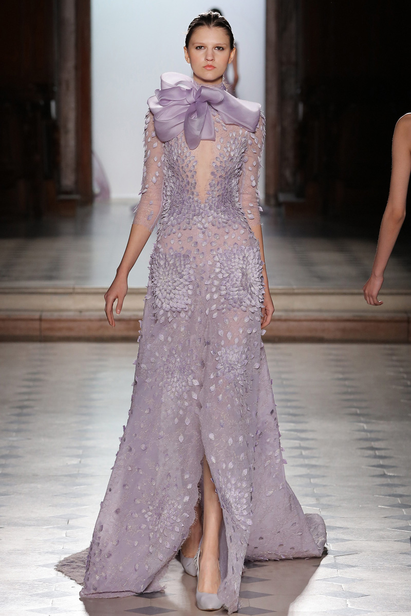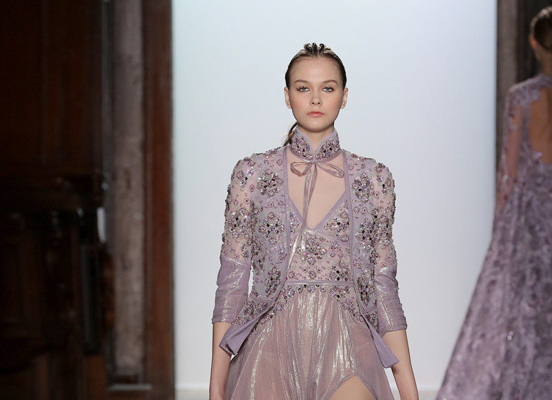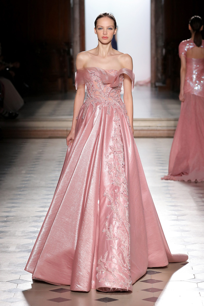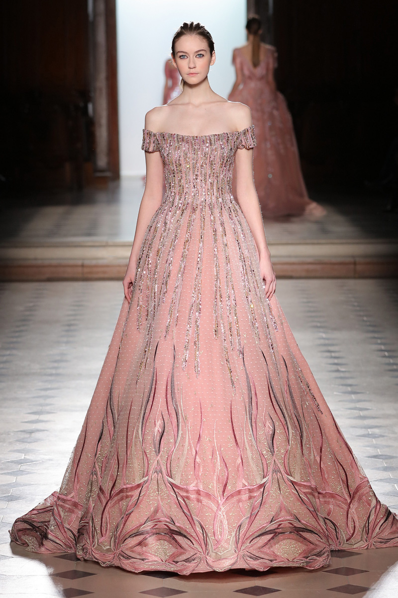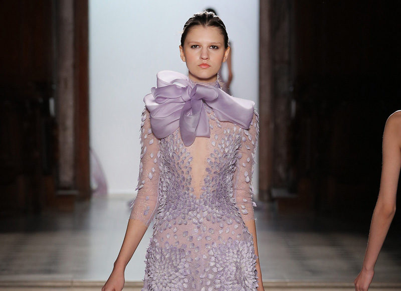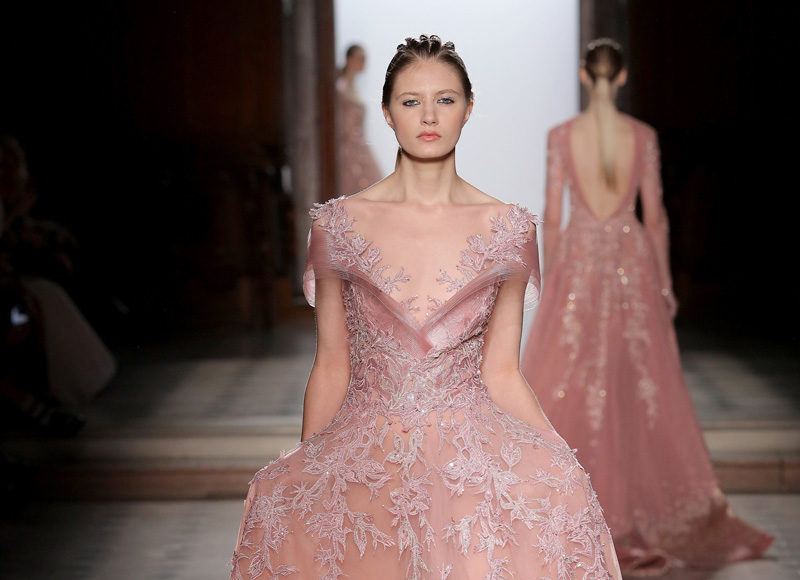 في مجموعة الأزياء الراقية لربيع صيف 2018 الأشكال المتكررة مشغولة يدويًّا بحرفية على الفساتين المصنوعة من الحرير والأورغانزا والتول المطرز إضافة للساتان المقطع. وتتراوح الألوان بين الزهري، الأرجواني، الأخضر الفاتح، الغريج والأبيض الكريمي؛ مما يبعث الضوء في المجموعة ويضفي عليها إحساسًا صيفيًّا منعشًا.