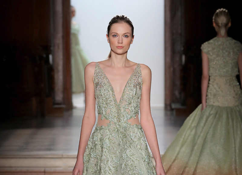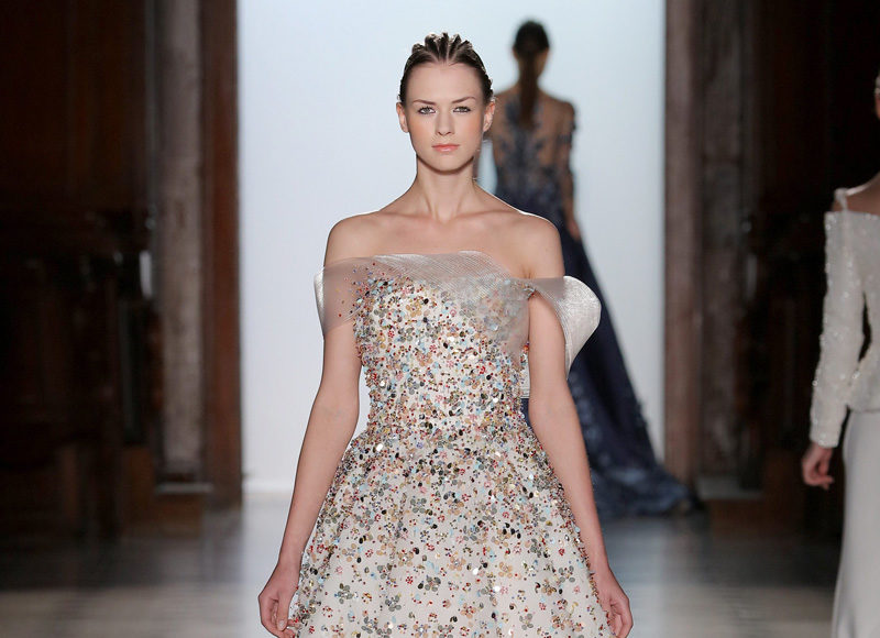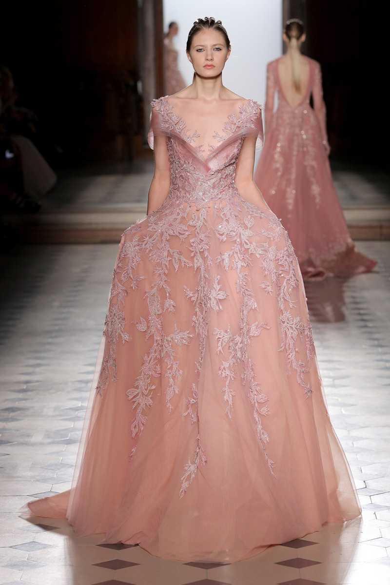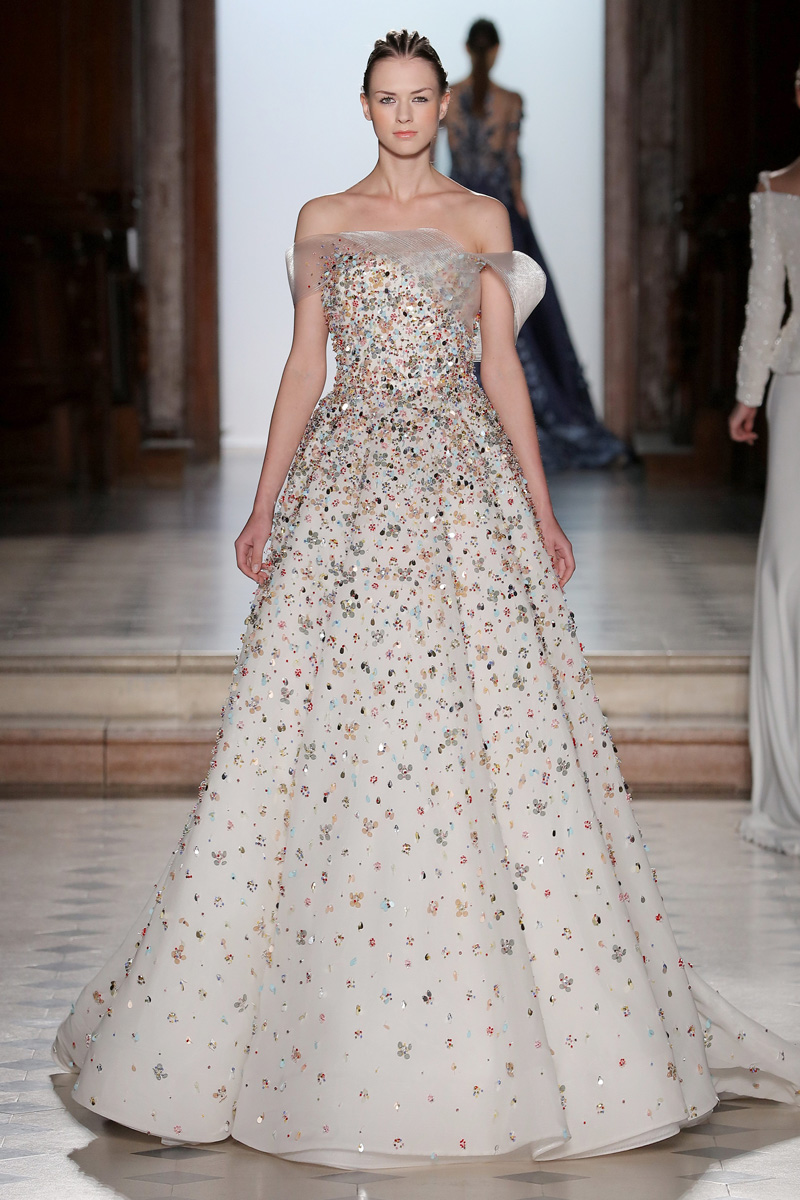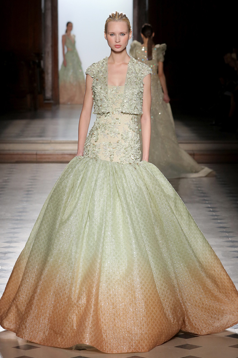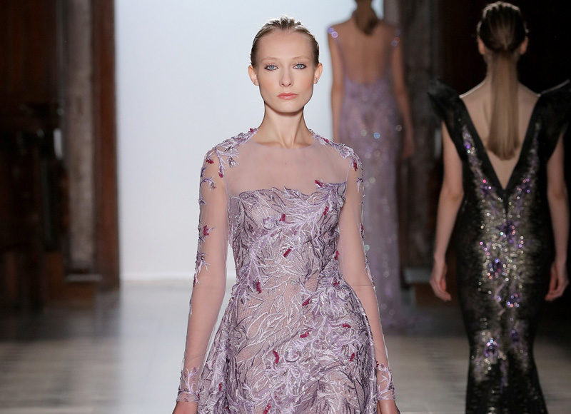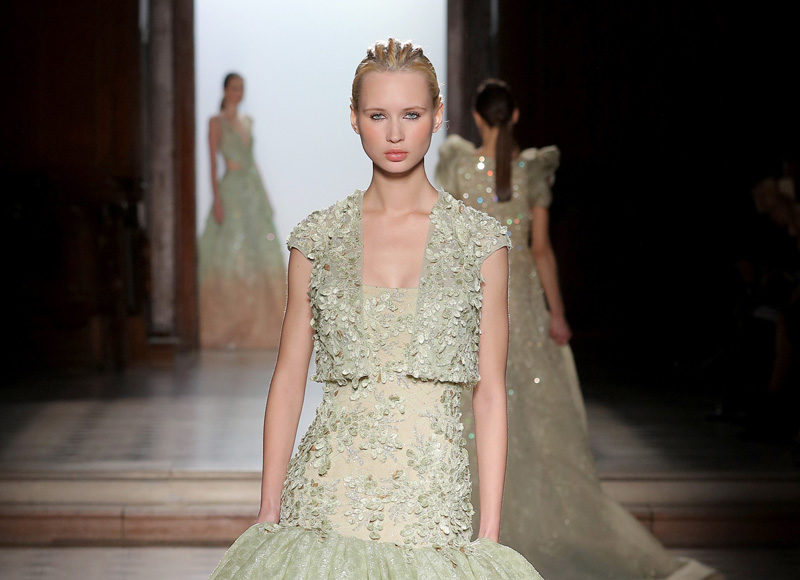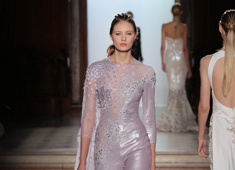 في مجموعة الأزياء الراقية لربيع صيف 2018 الأشكال المتكررة مشغولة يدويًّا بحرفية على الفساتين المصنوعة من الحرير والأورغانزا والتول المطرز إضافة للساتان المقطع. وتتراوح الألوان بين الزهري، الأرجواني، الأخضر الفاتح، الغريج والأبيض الكريمي؛ مما يبعث الضوء في المجموعة ويضفي عليها إحساسًا صيفيًّا منعشًا.