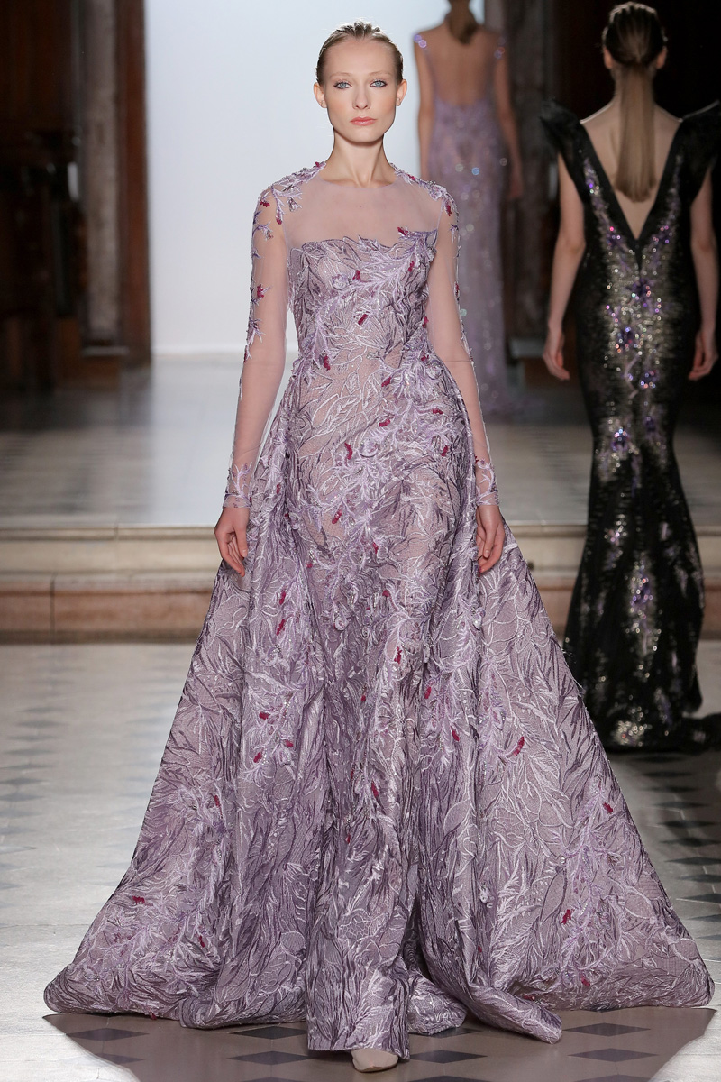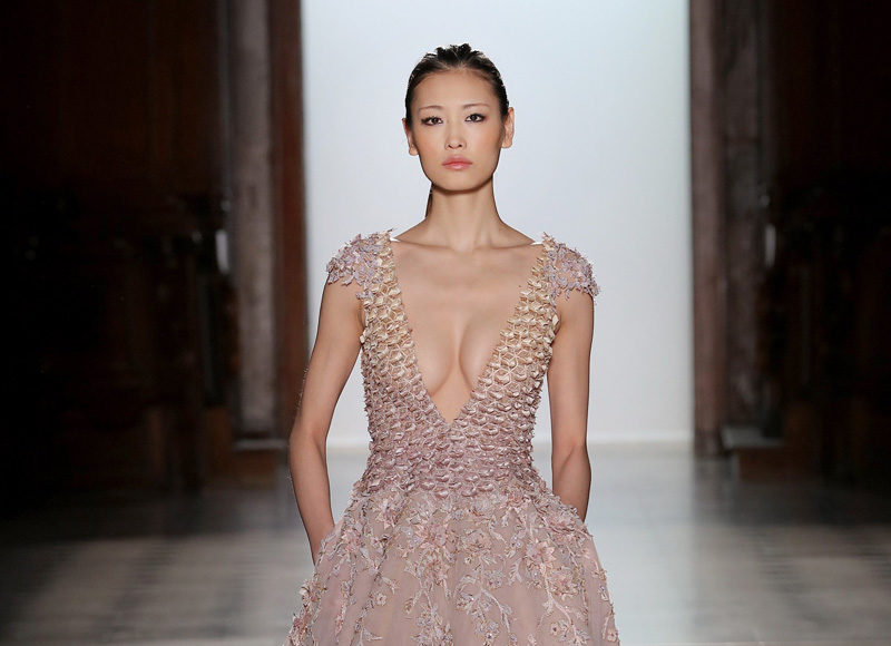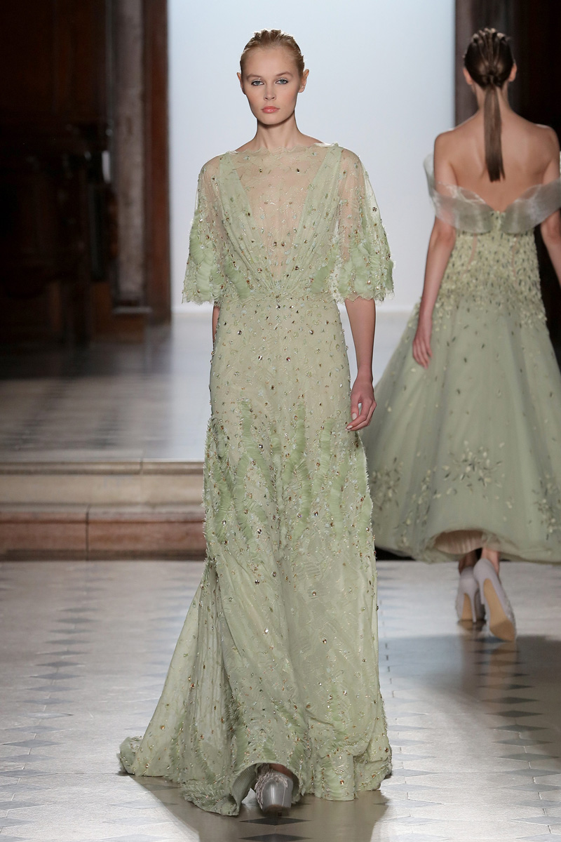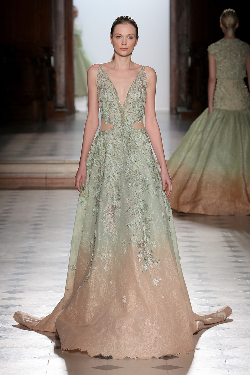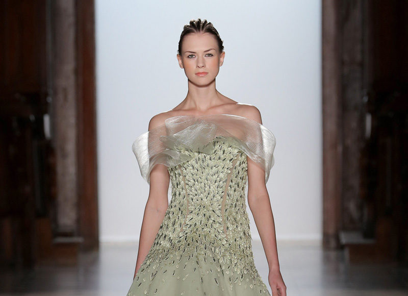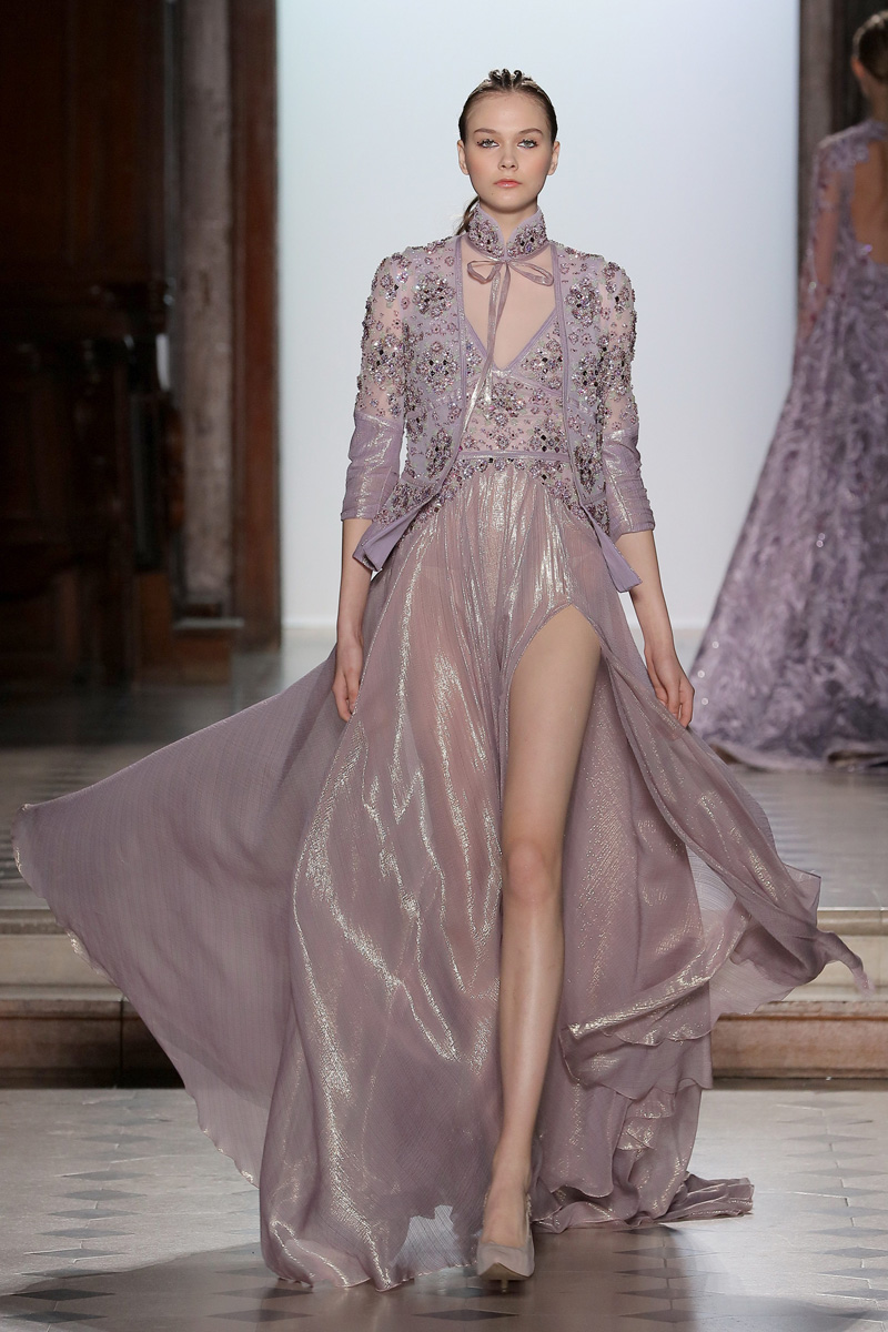 في مجموعة الأزياء الراقية لربيع صيف 2018 الأشكال المتكررة مشغولة يدويًّا بحرفية على الفساتين المصنوعة من الحرير والأورغانزا والتول المطرز إضافة للساتان المقطع. وتتراوح الألوان بين الزهري، الأرجواني، الأخضر الفاتح، الغريج والأبيض الكريمي؛ مما يبعث الضوء في المجموعة ويضفي عليها إحساسًا صيفيًّا منعشًا.