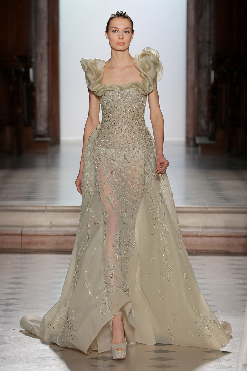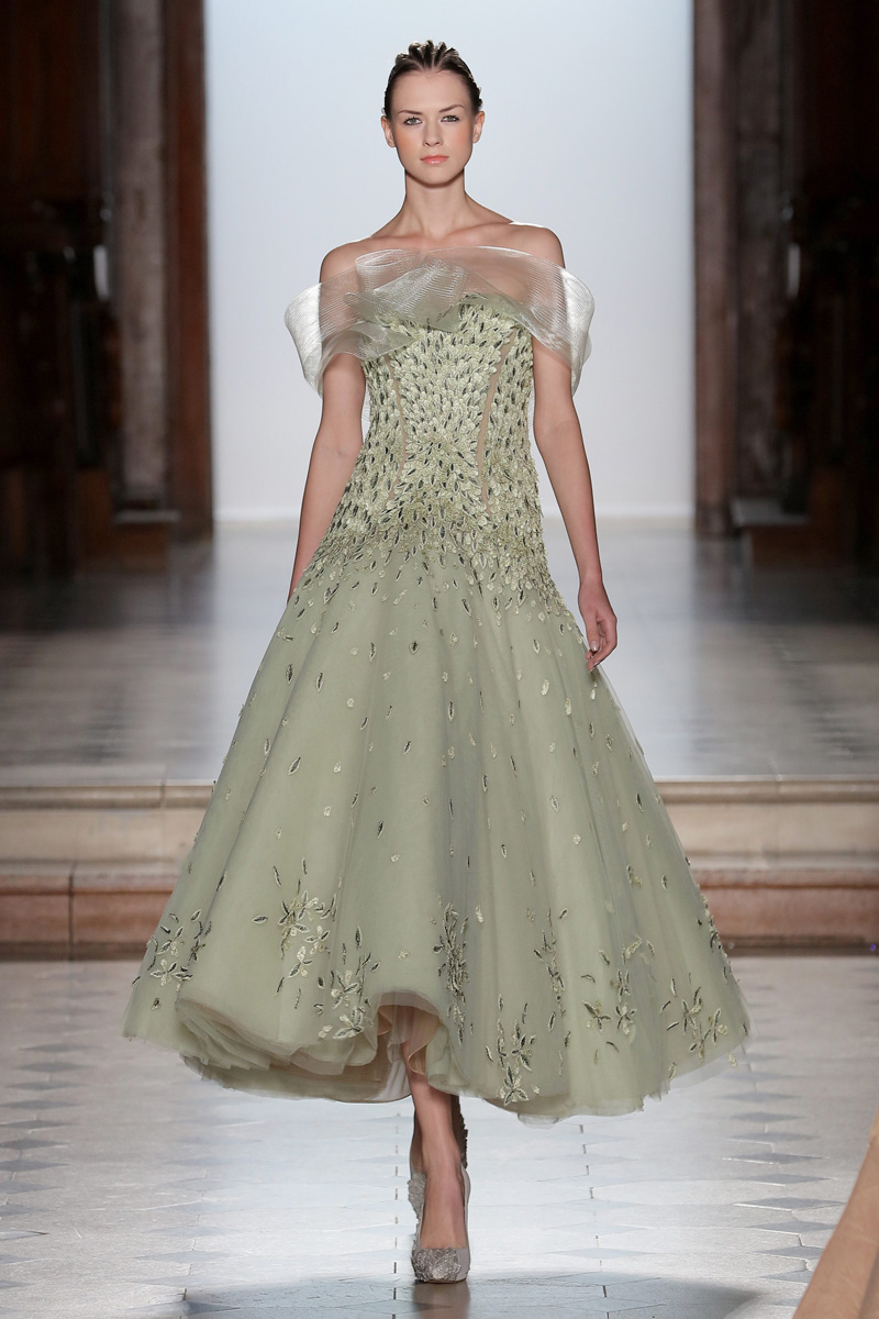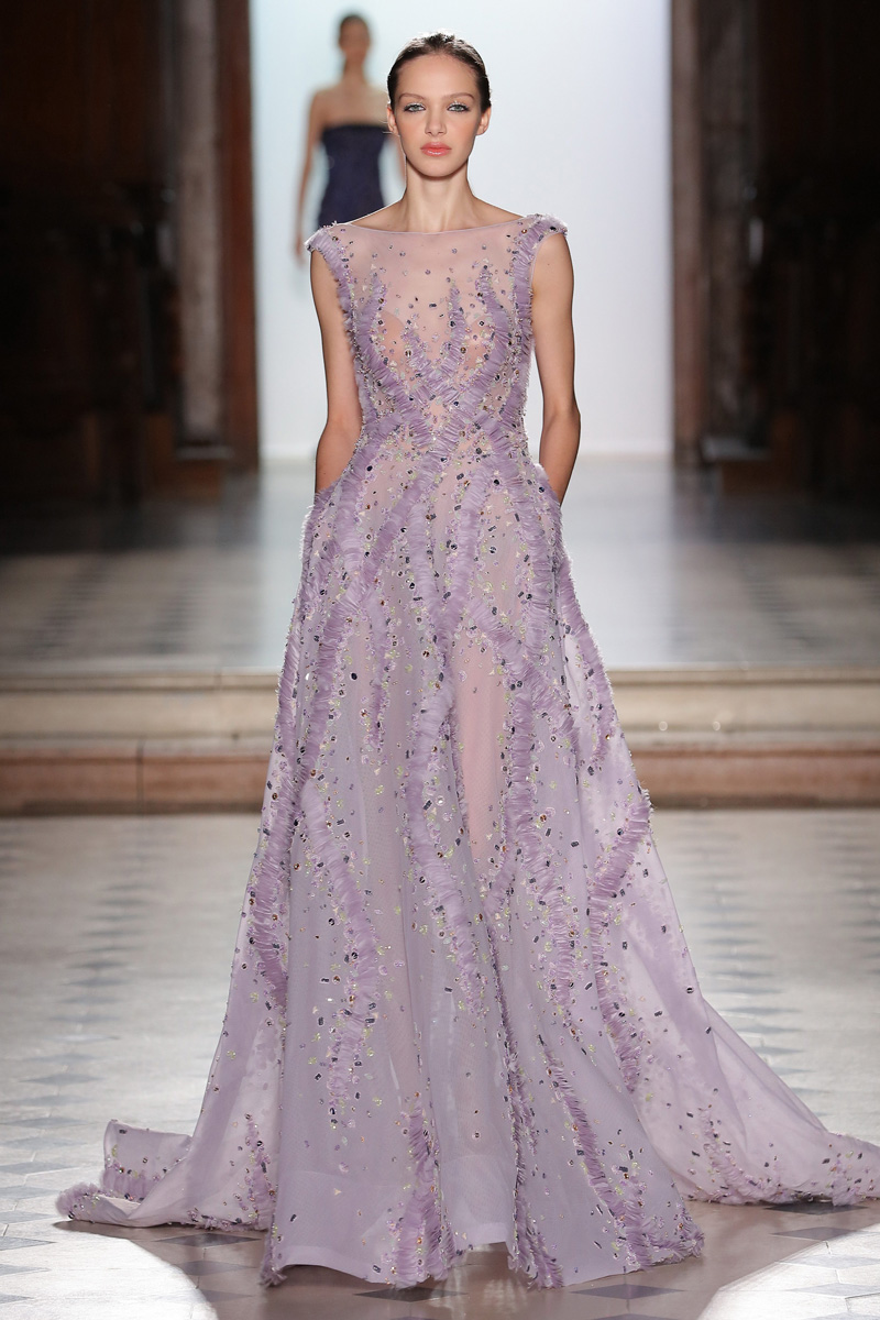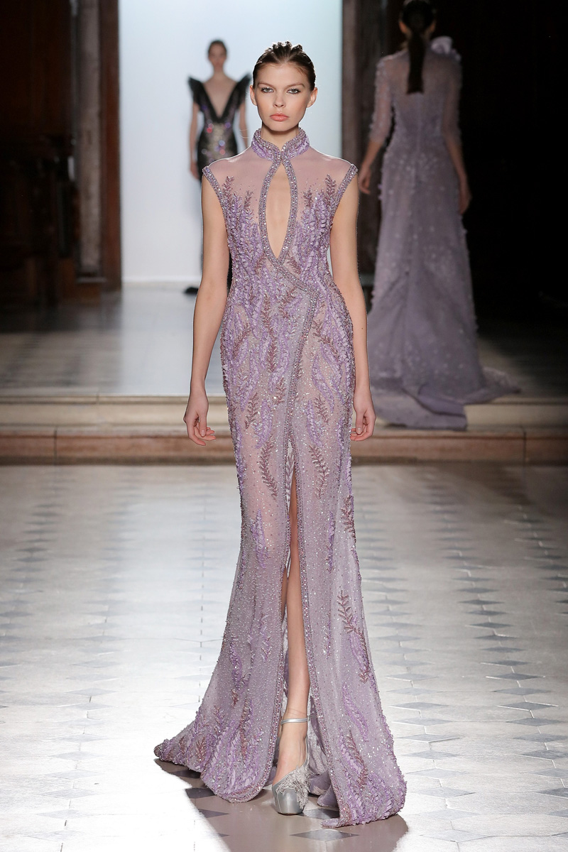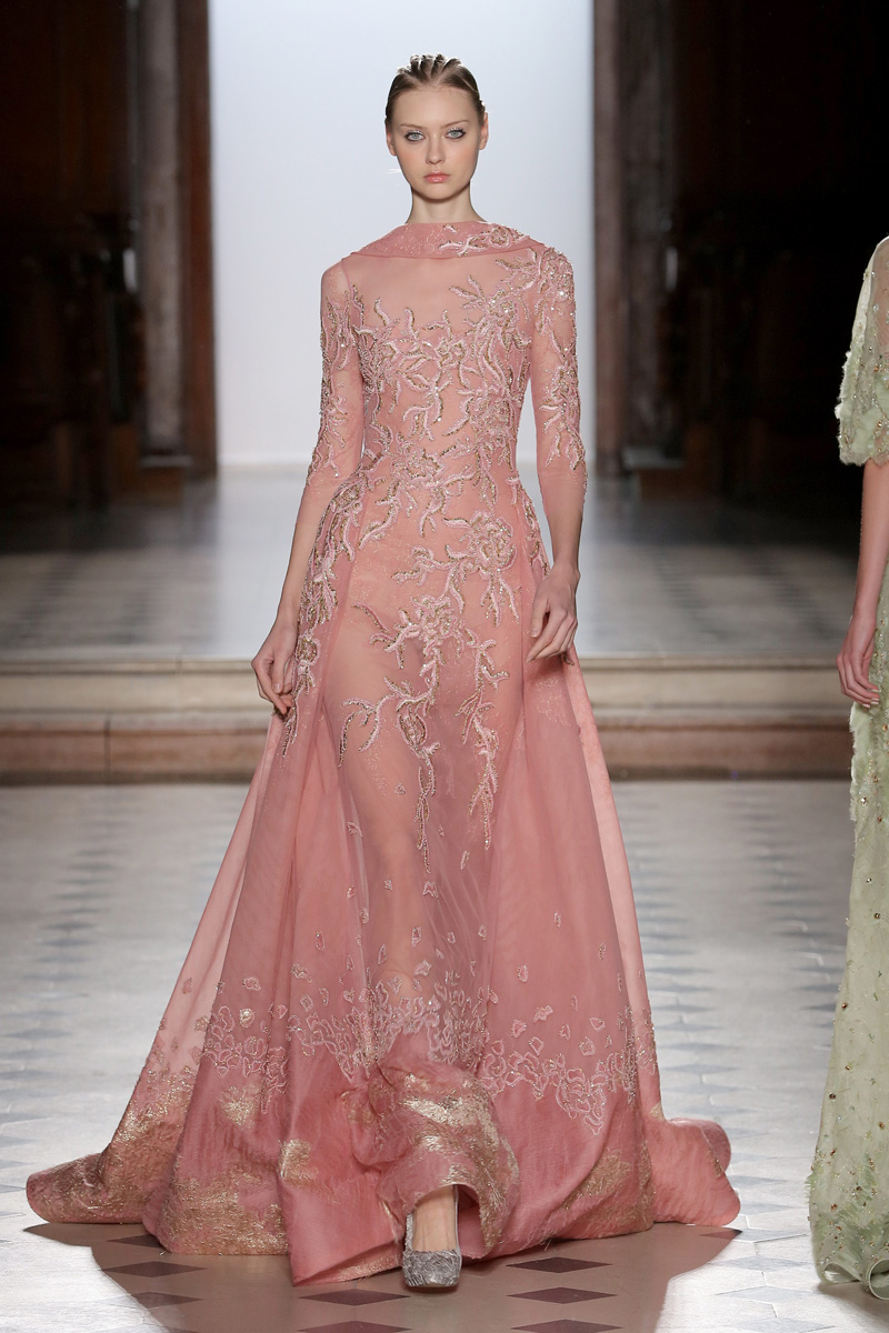 في مجموعة الأزياء الراقية لربيع صيف 2018 الأشكال المتكررة مشغولة يدويًّا بحرفية على الفساتين المصنوعة من الحرير والأورغانزا والتول المطرز إضافة للساتان المقطع. وتتراوح الألوان بين الزهري، الأرجواني، الأخضر الفاتح، الغريج والأبيض الكريمي؛ مما يبعث الضوء في المجموعة ويضفي عليها إحساسًا صيفيًّا منعشًا.