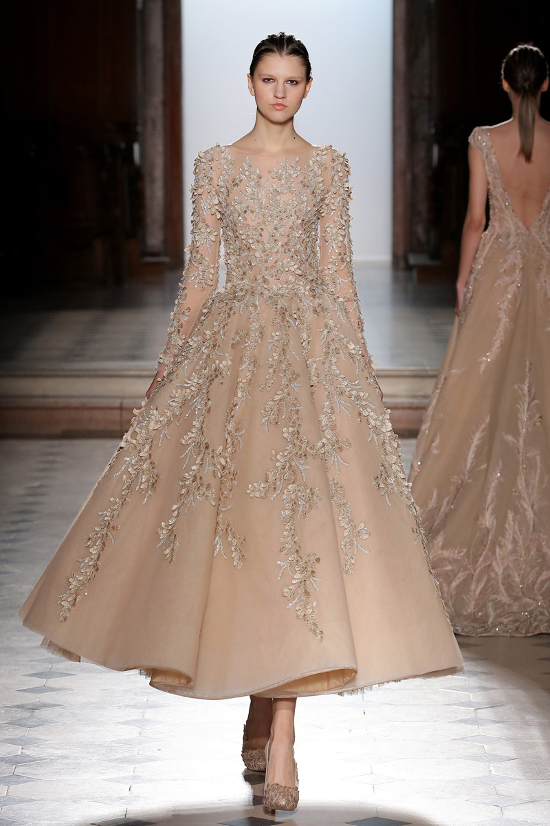 وقد نجح التطريز في إضافة لمسة جماليّة للفساتين بتناسقه مع أحجامها الواسعة والناعمة.