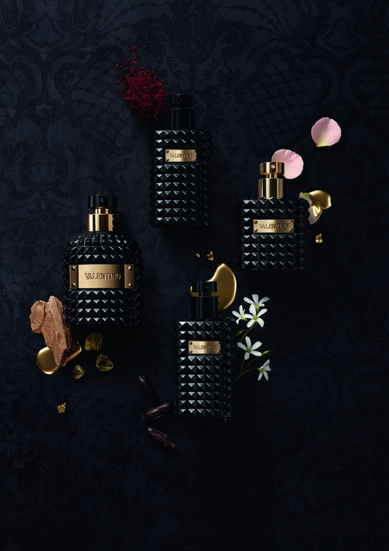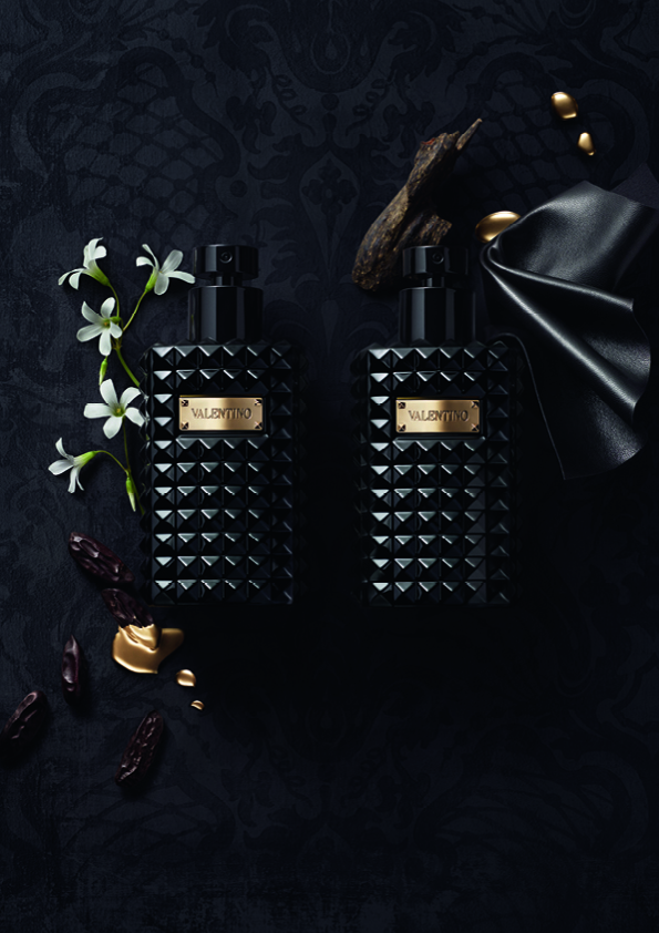 إنّ عطور Valentino Noir Absolu Essences هي النشيد إلى الفردية وفن الطبقات العطرية. فهي رؤية شرقية فخمة داخل زجاجات سوداء مرصعة، مع غلاف أسود حاد يبرز التكلّف الشديد والأناقة المطلقة. وتعود الأحجار الأيقونية المرصعة بالمسامير الزجاجية على زوايا لويحات الأسماء الذهبية إلى عالم Valentino للموضة، فيما تربط الألوان ومواد الزجاجة والغلاف Valentino Noir Absolu Essences مع عالم Valentino Noir Absolu الليلي.
