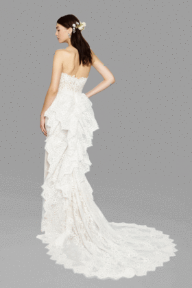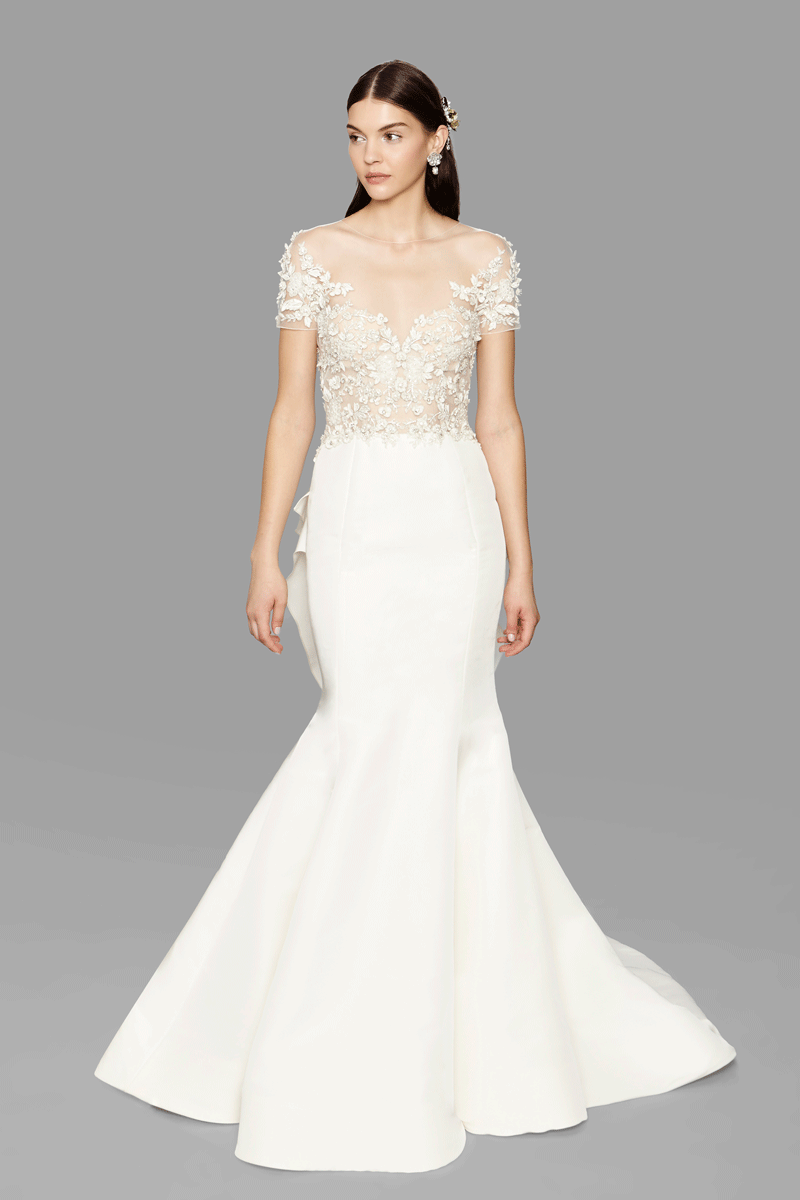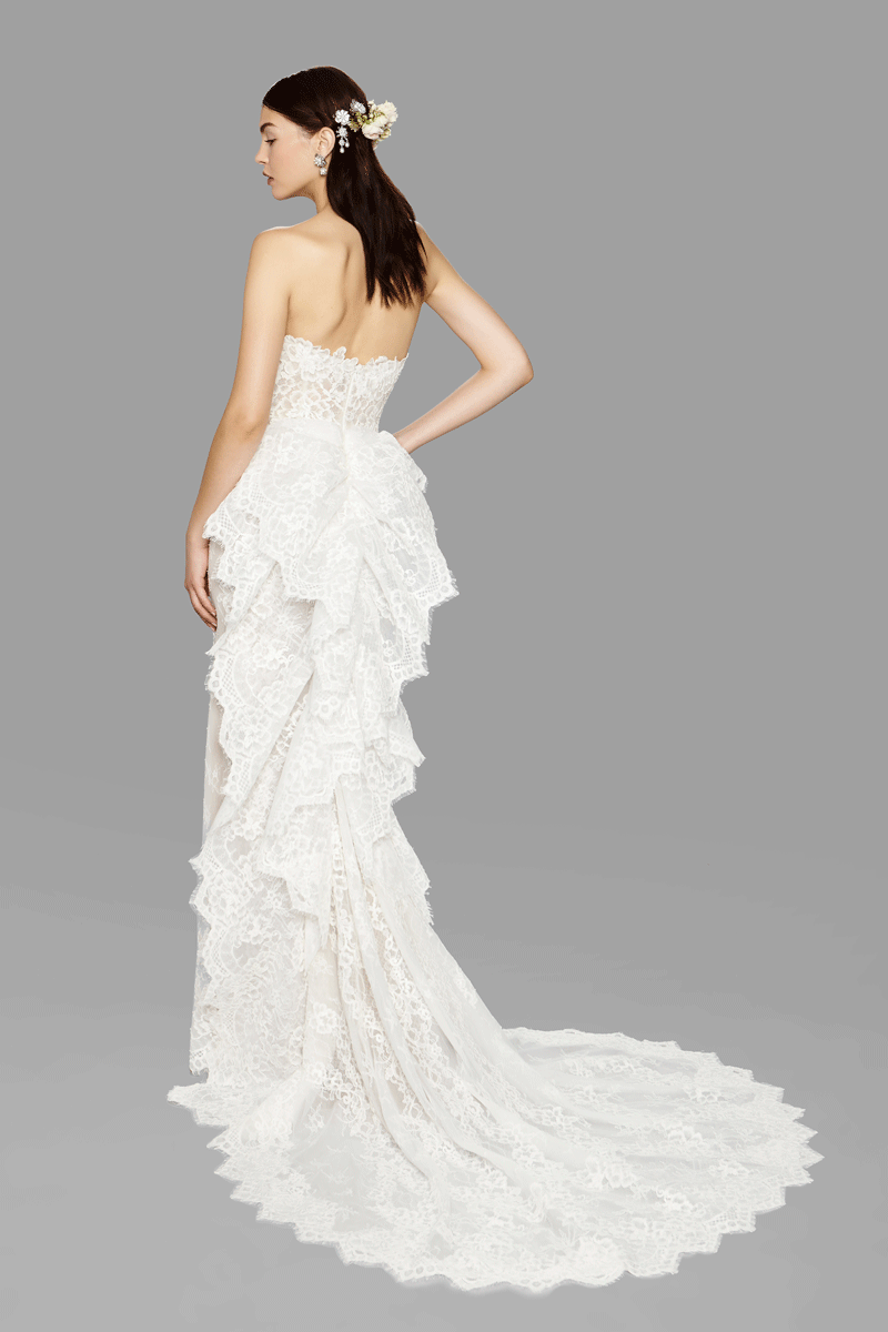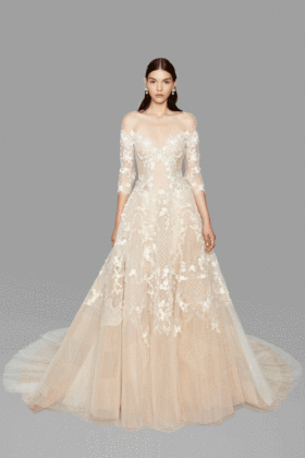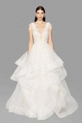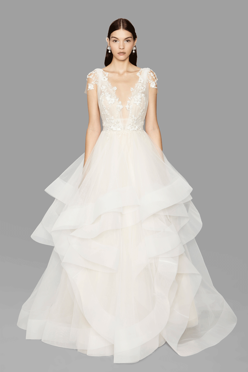 متوافرة لدى ESPOSA ، تغلب الفساتين الرومانسيّة الكاشفة للأكتاف ذات القصة الضيقة في الطبقة العلويّة والواسعة قليلاً تحت منطقة الخصر التي تضم الكورسيه الأنيق المموّج والمصنوع من حرير الأورجانزا. كما تبرز التطريزات ذات نقشة الأزهار على الأكمام المرفرفة بالإضافة إلى الدانتيل الشانتيي بألوانه النيود. وتتجلّى العذوبة والجمال والعناصر الشفافة واضحةً في الكورسيه الحريري المُصمّم بأناقة تامّة، في ما تضفي التنورة الطويلة من الخلف والقصيرة من الأمام والكاب القابل للإزالة والفصل لمسةً عصريّة لأسلوب أبدي في ما يتعلّق بأزياء الأعراس. ونلاحظ أيضاً الفساتين الدائرية والتول ذات الطبقات المتعدّدة والمشذّبة عند الأطراف والمطبوع عليها نقشة الأزهار. والفساتين ذات الخصر المنخفض وتلك المصمّمة من دون أكمام تتميّز جميعها بالقصات المفتوحة على الصدر والكاشفة للعنق والأطراف الجانبية التي تخلق وهماً. وتزيّن التطريزات ذات نقشة الأزهار الثلاثية الأبعاد فساتين الأعراس مع الحشوة المتعدّدة الطبقات والمنفوخة عندالمنطقة السفليّة من الخلف.