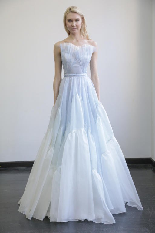 بعض الماركات صممت فساتين زفاف بظلال الأزرق الفاتح، واعتمدت الموديلات المنفوشة المستوحاة من الأميرات، مثل فساتين زفاف Hayley Paige، وLeanne Marshall.