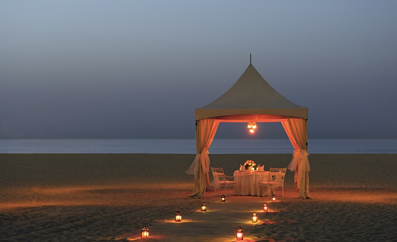 2500 د.إ للثنائي؛ عشاء مؤلّف من 4 أطباق على الواجهة الشاطئية مع حاجب شخصي، وباقة أزهار على الطاولة وشموع وسجادة حمراء.