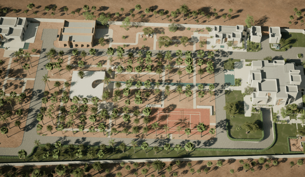 التصميم السابق كان يعتمد على التناظر الصارم، ويتبع خطوطًا رسمية في المشروع. ومع ذلك، من خلال تعزيز الهيكل وإبداع تكوينات حجميّة جديدة، تم تطوير سيناريوهات متعددة للأنشطة، ما أدى إلى خلق حجم معماري ديناميكي يتناغم مع الموقع، ويلبّي في الوقت نفسه احتياجات المشروع الداخلية والخارجية. خلقت هذه الأحجام مساحات مختلفة من الأقواس والشرفات بإطلالات متنوعة. في هذا المشروع، لم تعد النوافذ مجرد فتحات اتصال، بل أصبحت مداخل فعلية وأماكن تفاعلية بين الداخل والخارج، حيث تتصل معظم المساحات داخل المباني بالخارج بشكل مباشر.