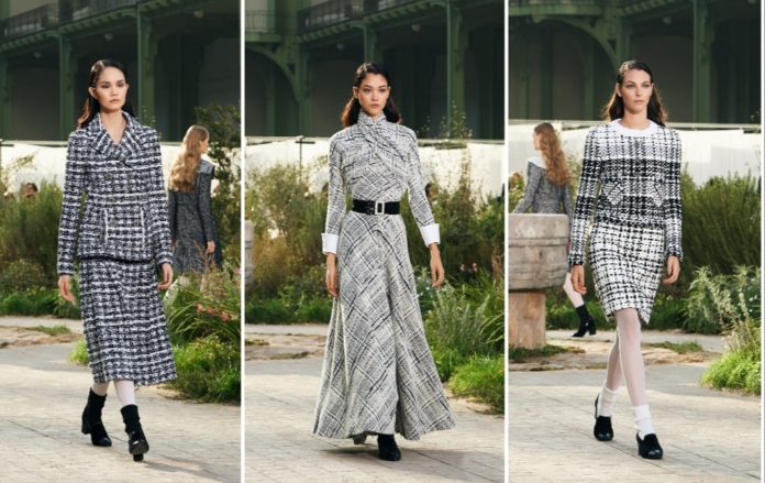 أطلقت شانيل مجموعتها الراقية لربيع وصيف 2020 ضمن أجواء مذهلة، إذ عرضت في باحة قصر Grand Palais إلى حديقة مذهلة من وحي حديقة دير Cistercian Abbey of Aubazine، حيث أمضت كوكو شانيل وأختها طفولتهما بعد وفاة والدتهما. ضمت المجموعة خيارات متنوعة من الفساتين ذات الأكمام الطويلة والبدلات التي تضم تنانير بدلًا من السراويل، التنانير الطويلة وتلك المميزة بقصة الميدي. أما فستان العروس، فتميز بقصته الميدي، الطيات الناعمة التي تزين الجزء العلوي منه، الياقة الناعمة من القماش الشفاف، الحزام الأبيض والأزرار المرصعة بالحبوب اللامعة.