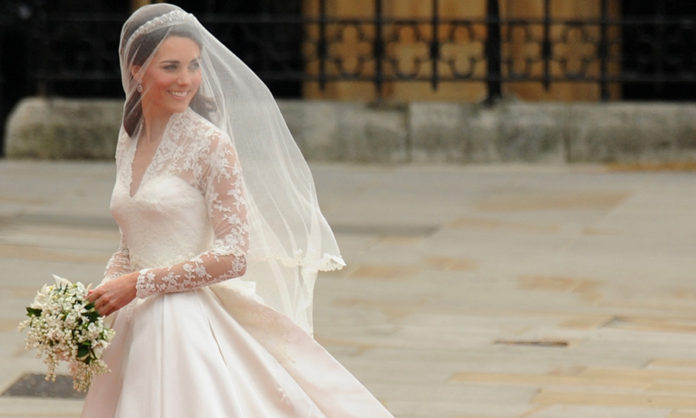 Kate Middleton smiles as she arrives at the West Door of Westminster Abbey in London for her wedding to Britain's Prince William, on April 29, 2011. AFP PHOTO / BEN STANSALL (Photo credit should read BEN STANSALL/AFP/Getty Images)
