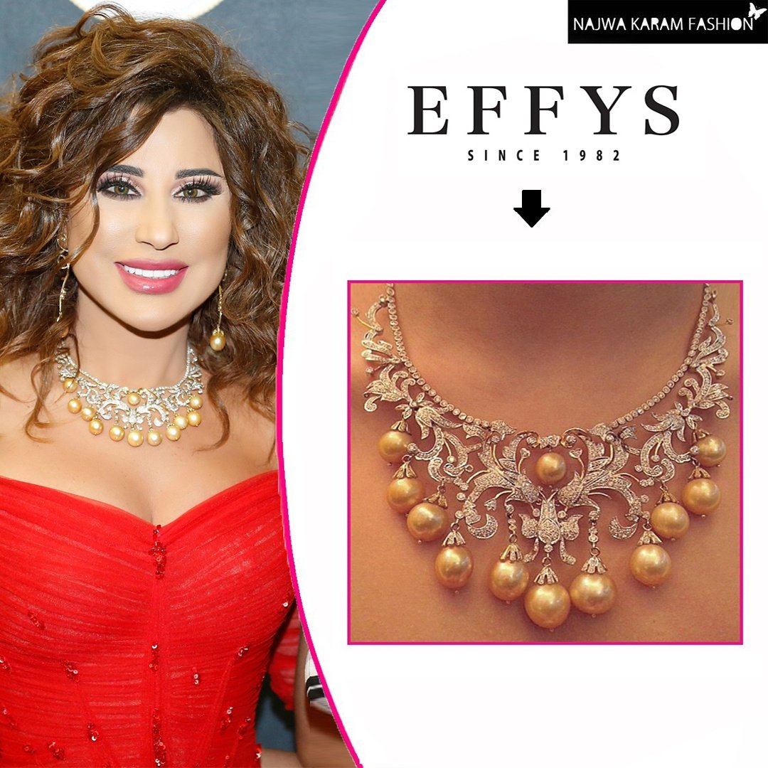 ورفعت نجوى شعرها بتصفيفة أنيقة وأكملت إطلالتها بعقد مميّز من مجوهرات Effys.