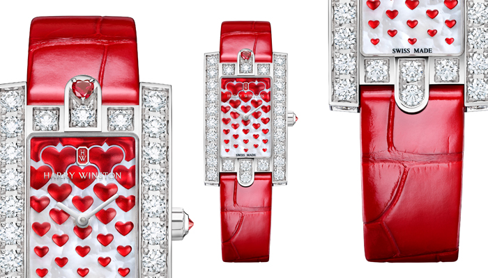 تقدّم هاري وينستون (Harry Winston) ساعة Avenue Classic Sweet Valentine المميّزة بتصميم يجعلها هديّة مثاليّة للتعبير عن الحبّ. فعلبتها المستطيلة المصنوعة من الذهب الأبيض والمرصّعة بالماس، تكشف عن روعة عرق اللؤلؤ الذي صُنع منه الميناء والقلوب الحمراء التي تزيّنه. أمّا الحزام الأحمر المصنوع من جلد التمساح، فهو يتّسم بمشبك مرصّع بستّة ألماسات تضفي المزيد من الفخامة على الساعة.