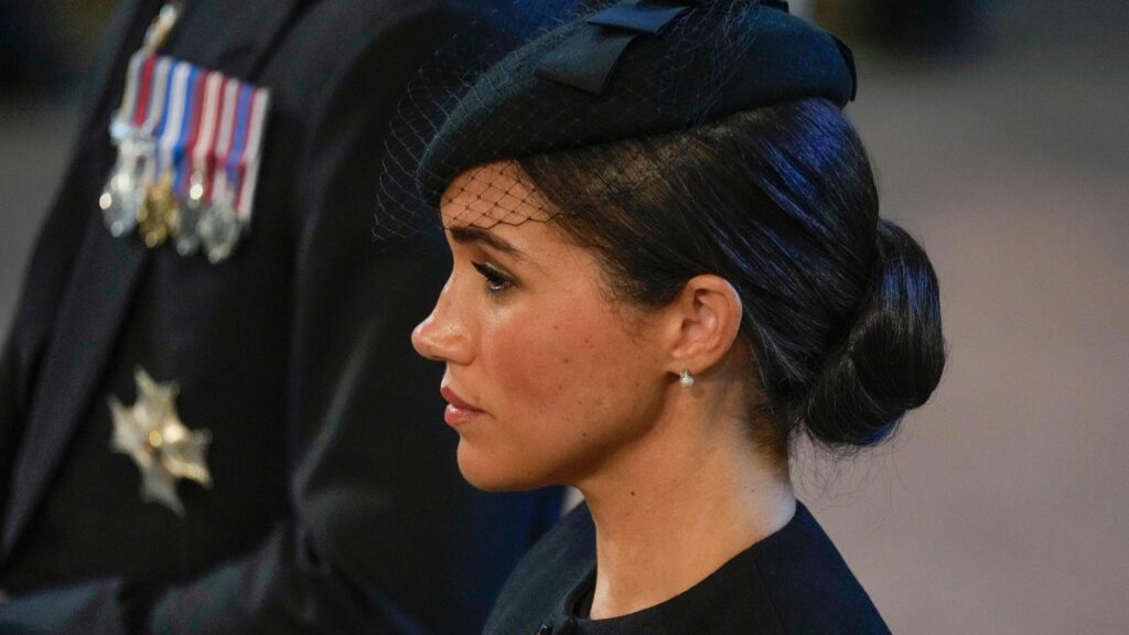 تقوم الممثلة الأميركية ميغان ماركل بتكريم خاص للملكة من خلال إكسسواراتها، إذ زينت نفسها بأقراط متدلية من اللؤلؤ والماس منحتها إياها الملكة الراحلة، في جنازة الملكة إليزابيث الثانية صباح الاثنين.