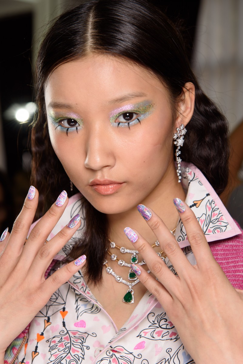 أما طلاء الأظافر الباستيل التي تأتي بألوان الأزرق، فأيضاً رائجة هذا الموسم مع التدرجات الفاتحة على كامل الأظافر العريضة والطويلة. وتأتي ألوان البنفسجي مع طلاء الأظافر المزخرف بطرق ملفتة للنظر من خلال تمرير الخطوط الهندسية والمتموجة مع الرسمات، مع الاستعانة بالألوان الأخرى كالنود خصوصاً على الاطراف الداخلية.
