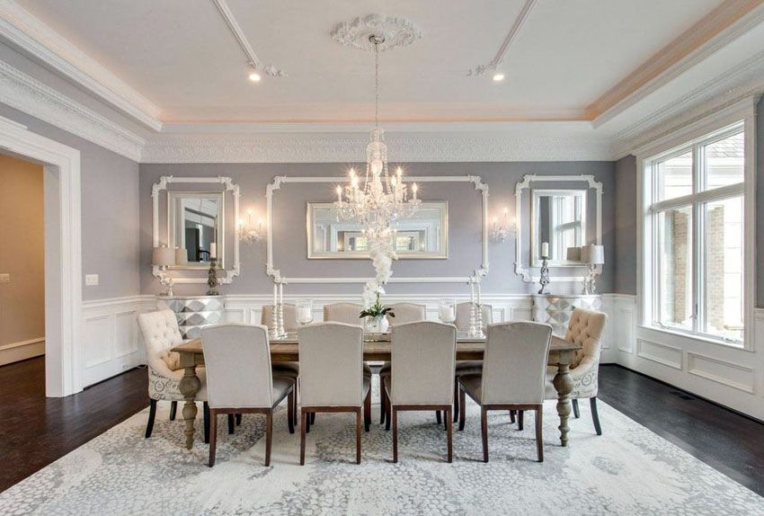 تبقى الطاولات المستطيلة من الخيارات الأكثر شيوعًا، فهي تتسع لعدد أكبر من الأشخاص. وفي هذه الصورة، تتجسد الفخامة من خلال الكراسي الثمانية الأنيقة، إصافة إلى كرسيين بتصميم مختلف وُضعا على رأس الطاولة.