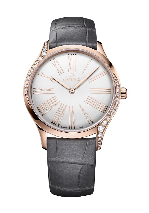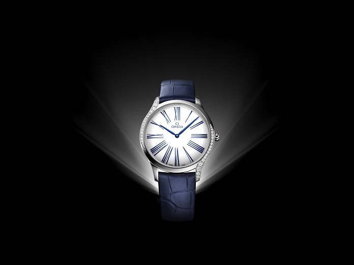ومن هذا المنطلق، تقدّم OMEGA تشكيلتها الجديدة De Ville Trésor، التي تضم تصاميم متنوّعة غنيّة بالخامات والألوان المتنوّعة. وتكشف تشكيلة Trésor عن ساعات كلاسيكيّة متألّقة مع لمسات عصريّة، وينفرد كل تصميم بنحافة علبته المرصّعة بالماس النقيّ بقياس 39 ملم أو 36 ملم المنحنية على الجانبين. كما تحوي التصاميم ماسة مثبّتة في التاج، تأتي ضمن وردة متألّقة تتألّف من خمسة شعارات OMEGA في سائل السيراميك الأحمر. كما تتميّز الساعات بأرقامها الرومانيّة المنقوشة أو المنقولة التي تحيط المينا المطليّ الدائريّ برقيّ.