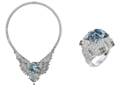 - عقد مجوهرات فاخرة En Équilibre Chapter II من الذهب الأبيض عيار 18 قيراط، ياقوت أزرق، ألماس