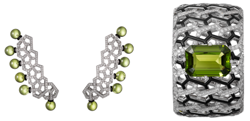 - أقراط مجوهرات فاخرة من الذهب الأبيض مع حجر البيريدوت، طلاء لاكيه، ألماس