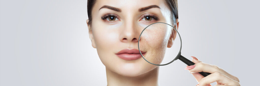 – الشيخوخة التي تمد الجلد، مما يخلق مسامًا أوسع