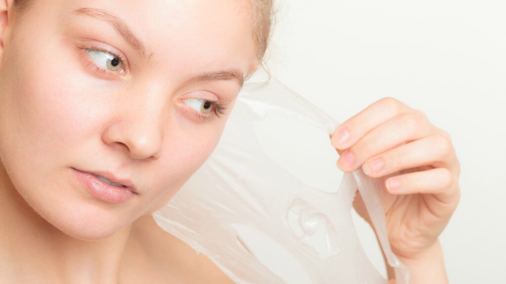 بياض البيض عامل رائع لتوحيد لون البشرة وشدها وتقليص المسام الواسعة، وهو يزيل الزيت الزائد بسهولة. لهذا، حضري قناع تقشير باستخدام بياض البيض. اخفقي بياض البيض جيدًا ووزعيه بالتساوي على وجهك، ثم خذي مناديل ورقية وغطي بها الوجه بالكامل حتى يلتصق بها بياض البيض. بعد أن يجف قناع بياض البيض تمامًا، قومي بتقشيره، ثم اغسلي وجهك بالماء.