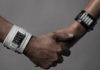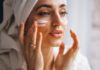 أكملت إطلالتها بجزمة Heron مصنوعة من الجلد البيج المزيّن بالكريستال الذهبي، بنفس نقوش الوشوم الفنية، وأضافت لمسة براقة بخاتم فضي من نوع T-bar مزيّن بالمعدن والكريستال.