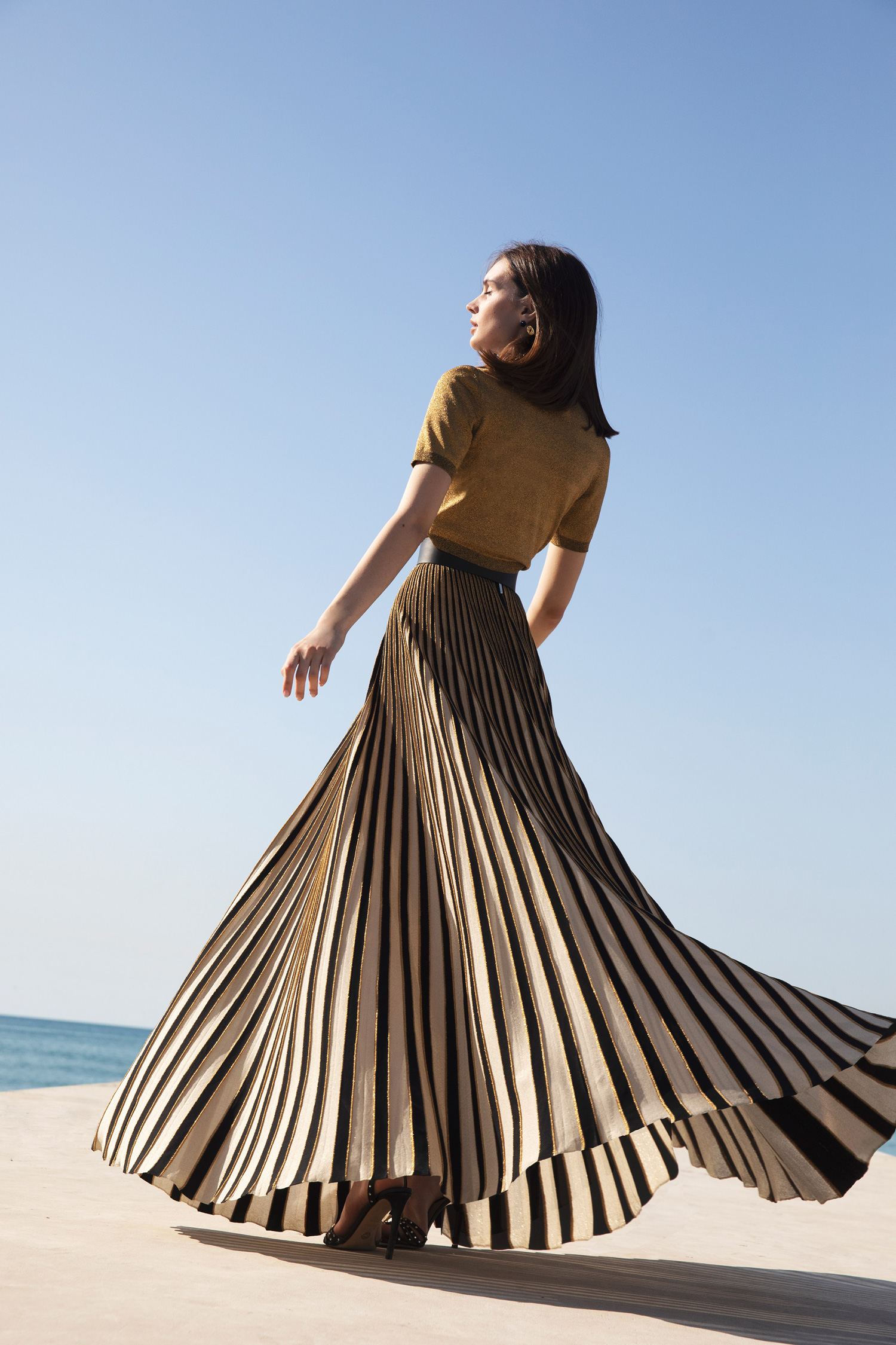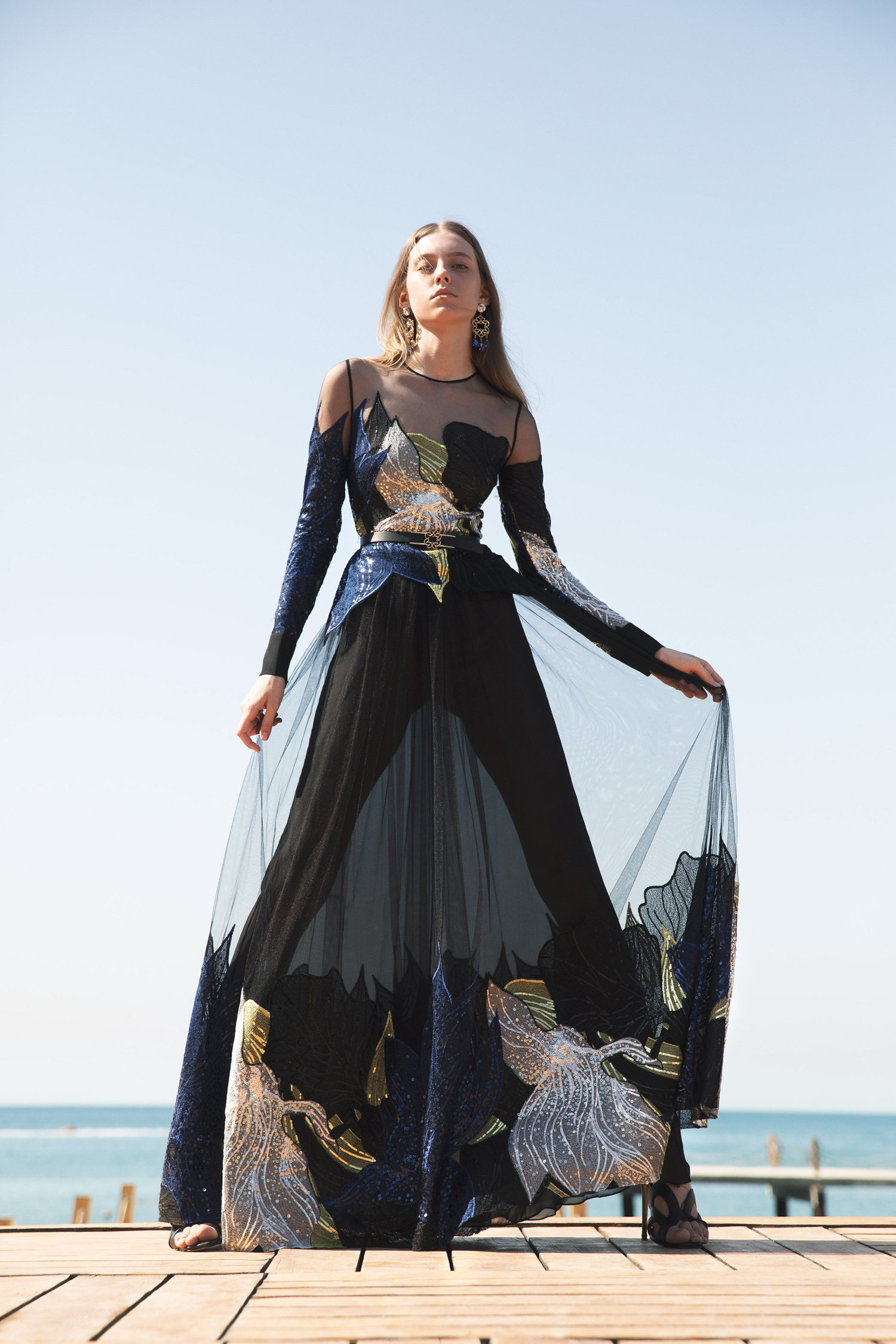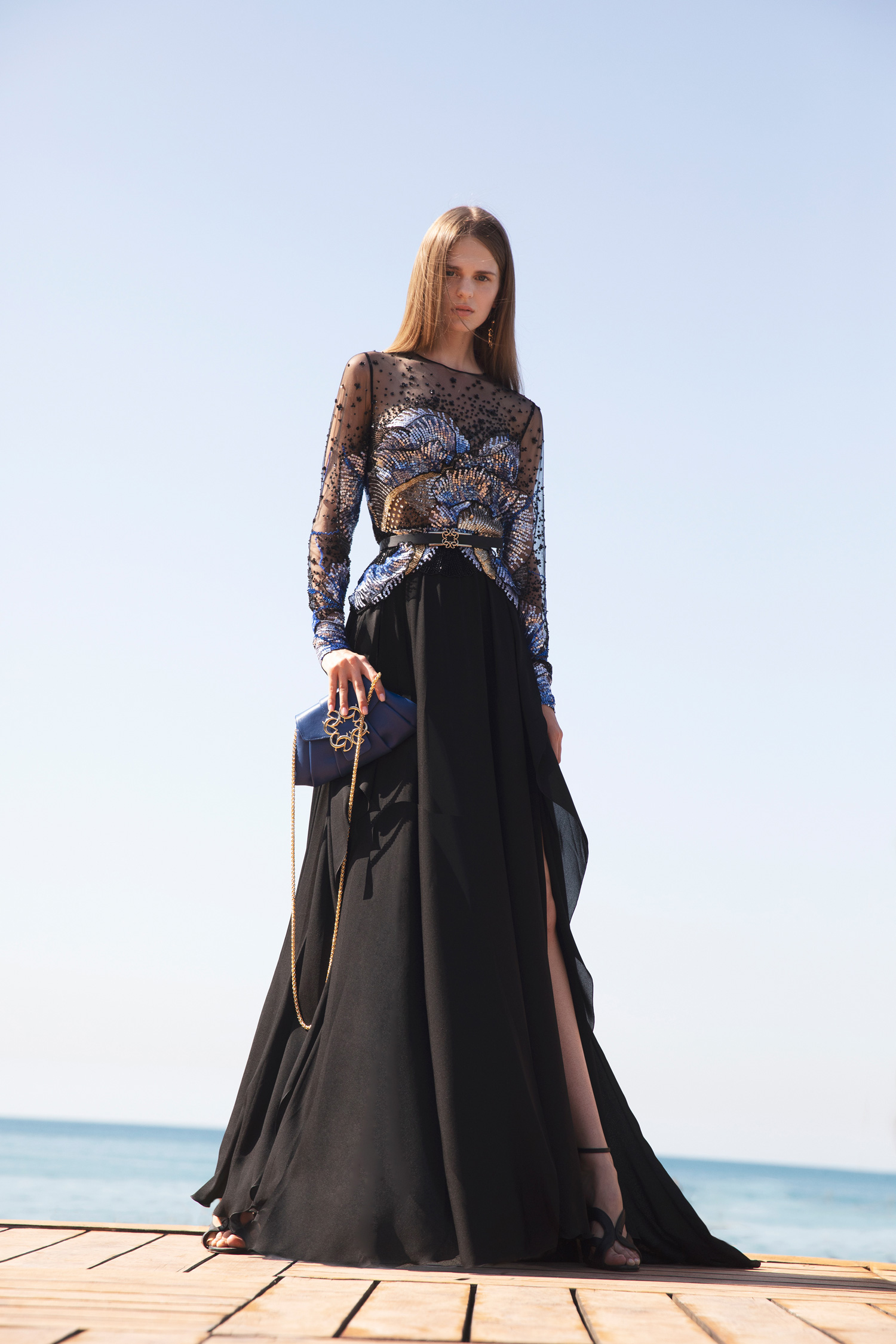 وقد جسد إيلي صعب ذلك في الفساتين المثنيّة والقصّات ذات الشقوق الطويلة، وعرضت قطع مستوحاة من البحّارة باللونين الأبيض والأسود والمزيّنة بالأزرارِ الذهبية أو تلك المطبّعة برسومٍ من الطبيعة الخضراء.كما تتراوح الإطلالات بين التصاميم العمليةِ المريحة، وفساتينِ قماشِ التول وأشكال جذابة ومتبدّلة، ضمن لوحة ألوان تضم الأحمر الماندرين، والأخضر اللامع والأزرق المضيء.