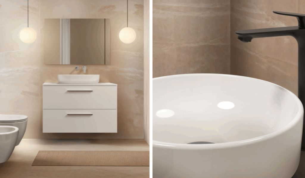 تتوفّر هذه الأحواض بأشكال دائرية وبيضاوية، مع تصاميم رقيقة ومحدّبة تتماشى بسهولة مع الأسطح الصغيرة ووحدات الأثاث.
