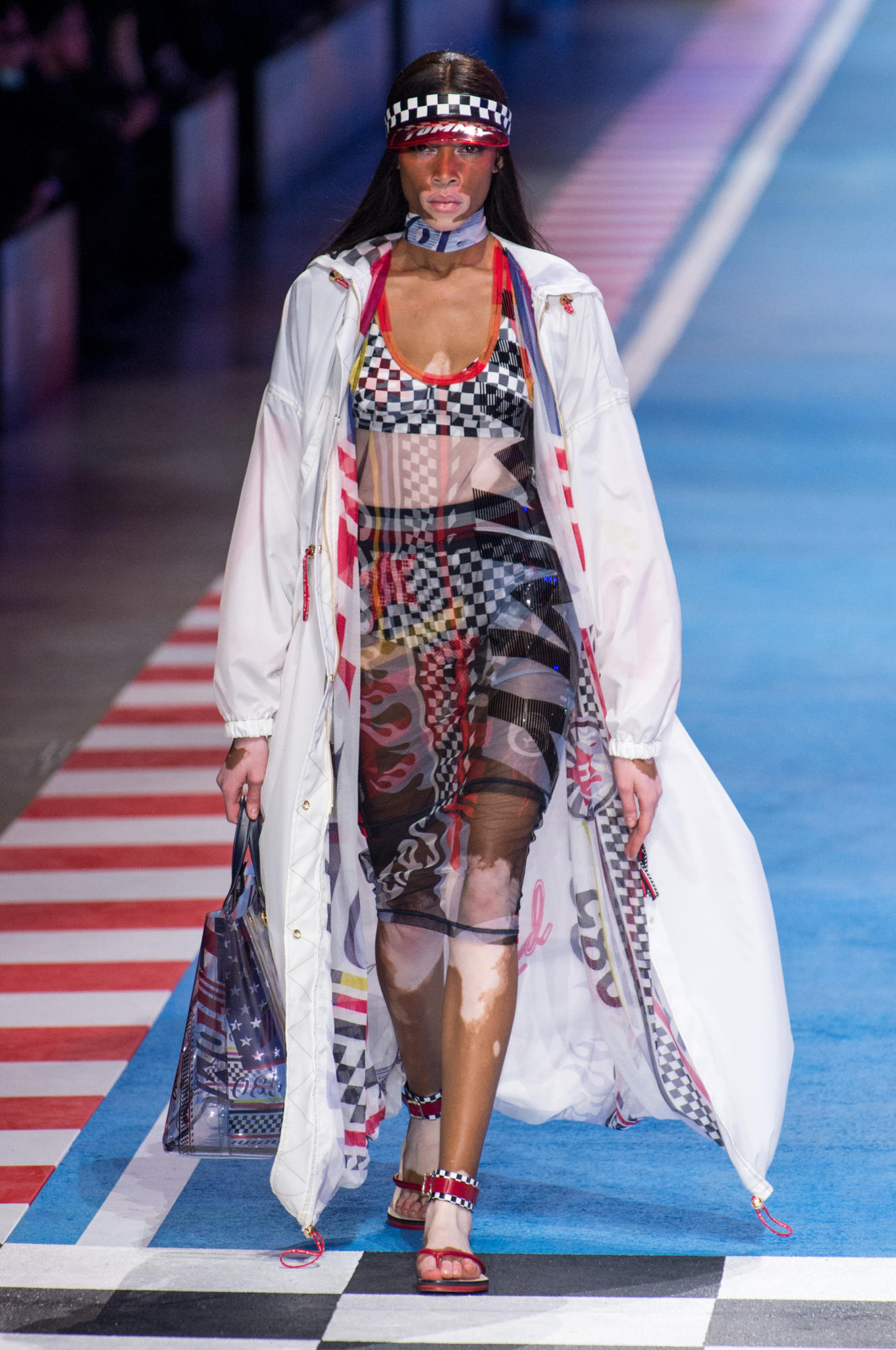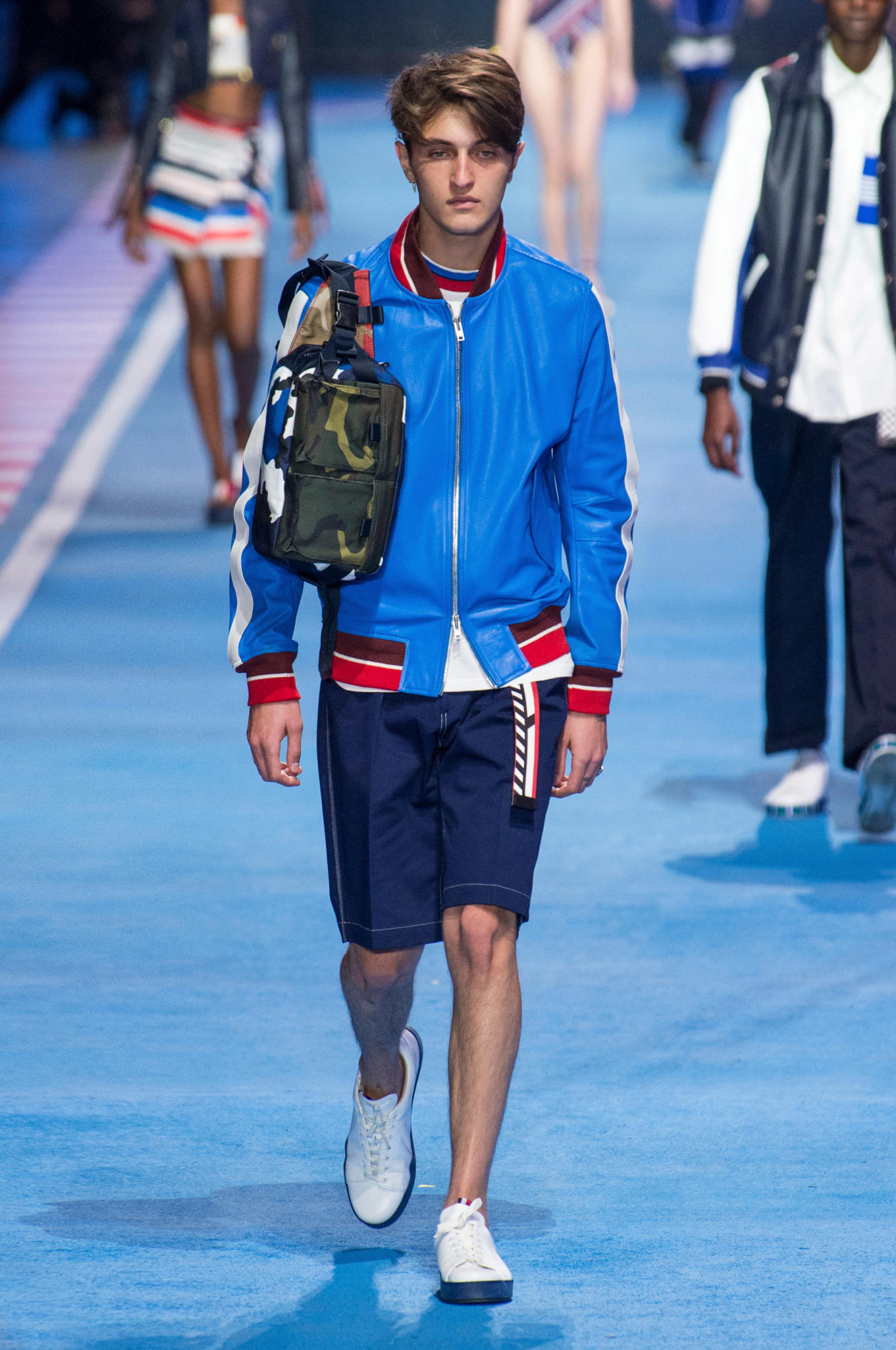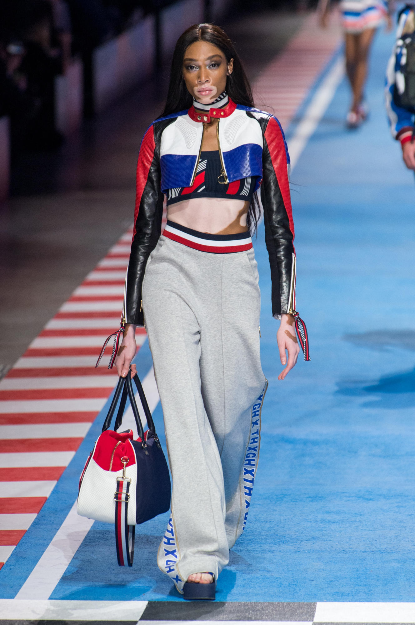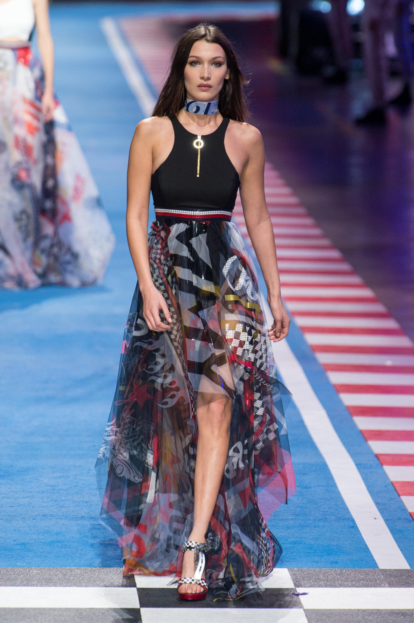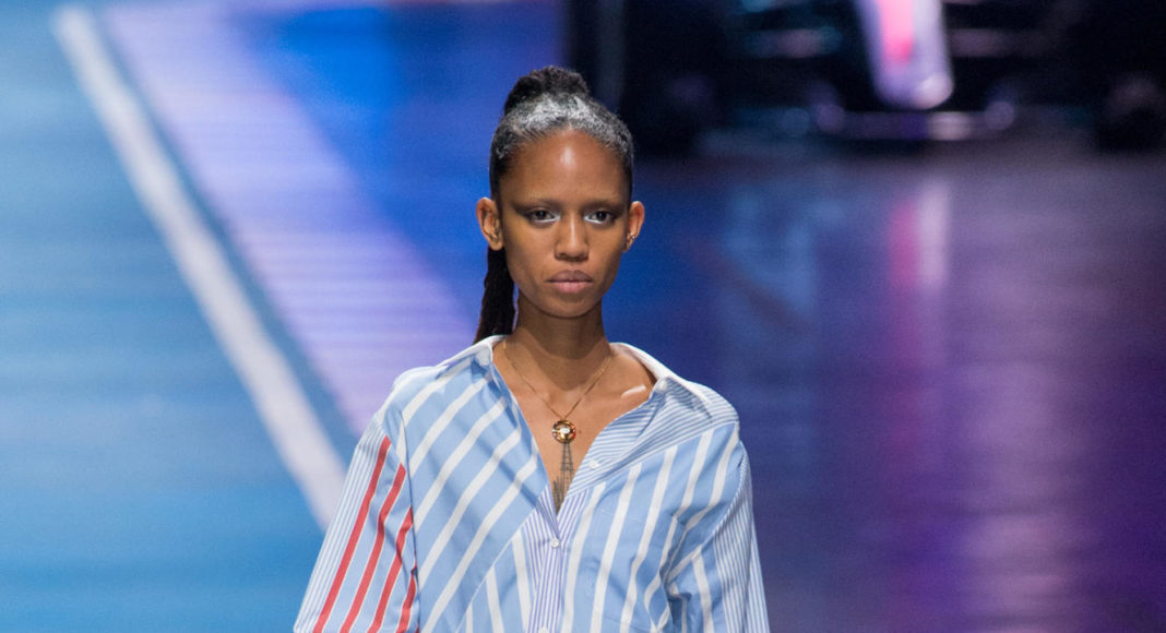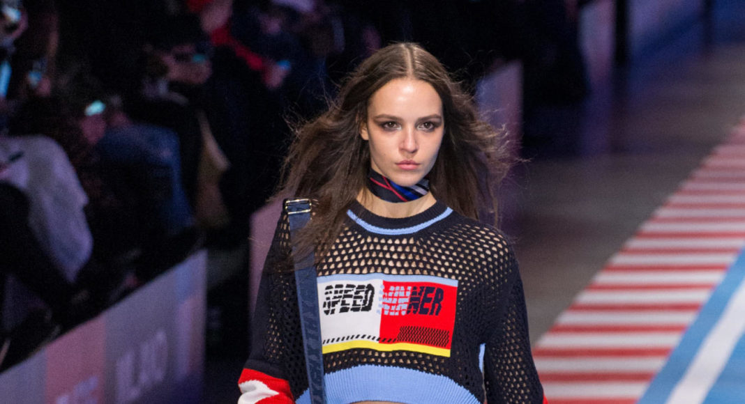 سارت العارضات في قاعة ميلانو كونغريسي على إيقاع الموسيقى الصاخبة والمتسارعة وافتتحت عارضة الأزياء العالمية جيجي حديد العرض الذي شهد مشاركة نجوم ونجمات عروض الأزياء، مثل بيلا حديد، لاكي بلو سميث، ويني هارلو، هايلي بالدوين، كريستيان “كينغ” كومبس، كورديل برودوس، أودري هلفيجر، جوليان أكليبو، هانا فيرغسون، جوان سمولز، سورا تشوي، وجوزفين سكريفر.