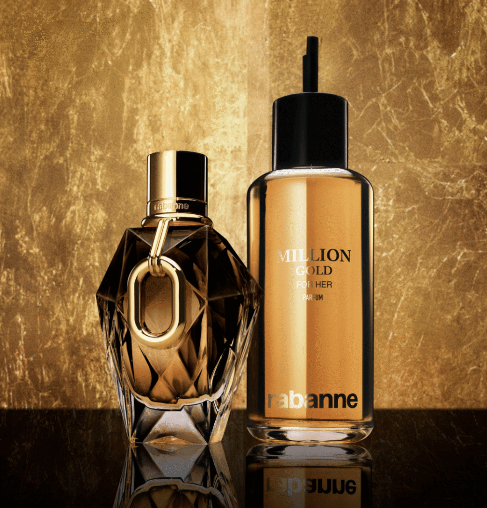 اغمري نفسكِ بالكثافة الجديدة المتقدة لعطر مليون جولد للنساء بارفان.