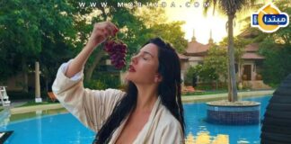 معتصم النهار وزوجته يقضيان عطلتهما أمام حوض السباحة في دبي –...