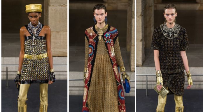 من الحضارة المصرية القديمة، استوحى كارل لاغرفيلد، المدير الابداعي لدار شانيل (Chanel) المجموعة التحضيرية لخريف ٢٠١٩، فكانت تصاميم مميزة اتسمت بقصاتها الجميلة. فالفساتين والسترات أتت بوحي من ملابس كليوباترا والرجال المصريين القدامى، والألوان أيضًا إذ ظهرت بتدرجات مثل الذهبي...