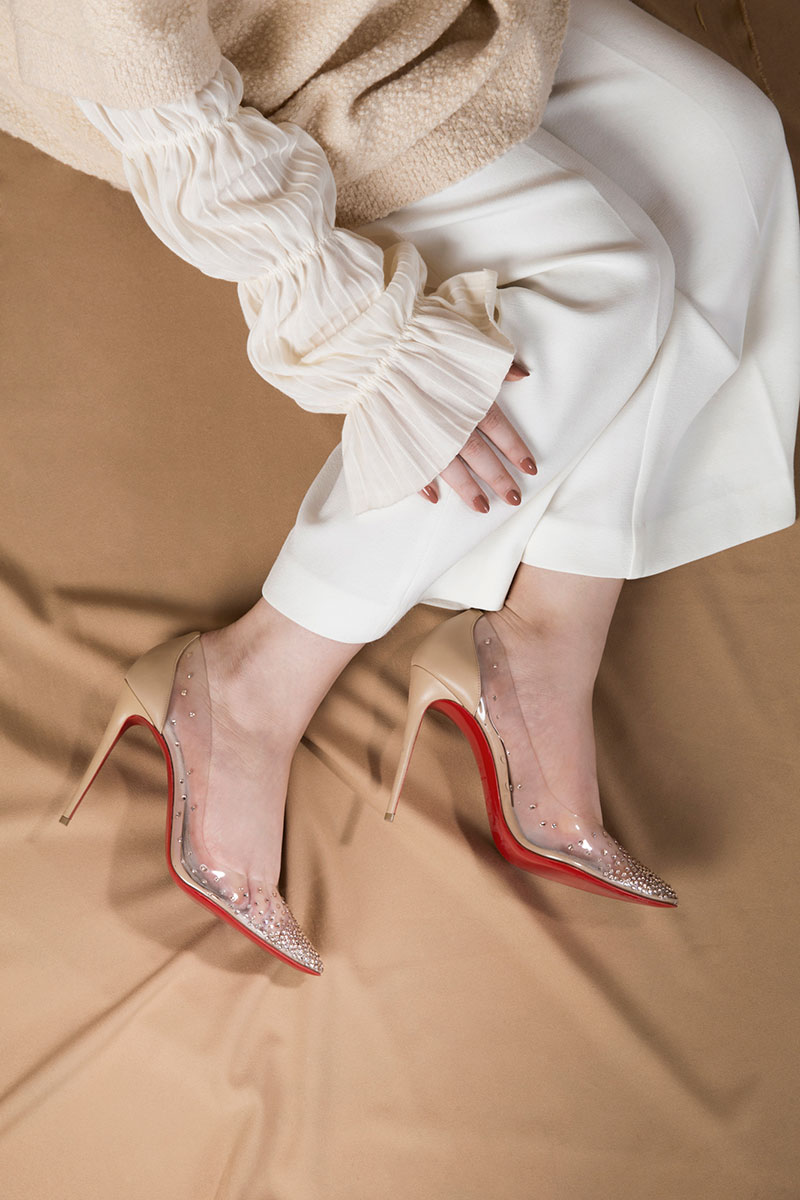 في خطوة للانطلاق بهذا المفهوم نحو أفق جديد، يكشف كريستيان لوبوتان عن أحدث إضافاته لمجموعة “نود”: “ديجراستراس بي في سي” Degrastrass PVC ذات الأسلوب الجديد الذي يتميز بجزء علوي زجاجي مرصّع بالستراس الآسر للأنظار. هذا الحذاء الذي يتطابق تقريبًا مع كلّ لون من ألوان البشرة بألوانه العارية السبعة يجذب الضوء إليه بدءاً من رأس القدم، فيساهم في إبراز طلّة السندريلا العصرية.