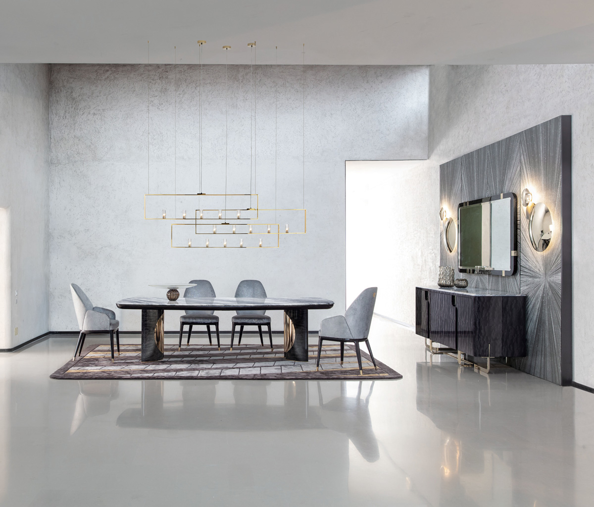 تتميّز مجموعة Mirage بأسلوبها المعاصر وأشكالها المربّعة وخطوطها الواضحة التي تضفي مظهراً متطوّراً وروحاً نابضة بالحياة داخل المساحات، وهي تضمّ موادّ وأنسجة رائعة. ولدى MIRAGE، لا يزيّن الرخام الأسطح والتفاصيل فحسب، بل يصبح هيكل الأثاث، الأمر الذي يعكس التوازن الكلاسيكيّ للموادّ. كما أنّها تضمّ أكثر من 50 تصميماً من ضمنها الملحقات والأكسسوارات الثمينة مثل المصابيح والسجاد والمرايا والمزهريّات واللوحات.